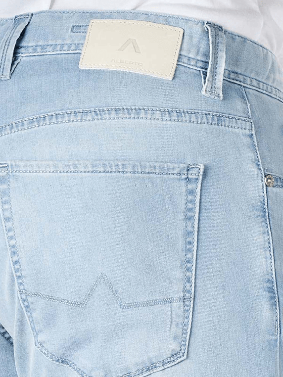 Die Alberto Pipe Jeans Slim Fit in der Farbe Dyed Navy ist eine legere Five-Pocket-Jeans mit normalem Bund und gerade geschnittenen Beinen. Sie ist aus einem Materialmix mit hohem Stretchanteil gefertigt. Der Stoff ist insgesamt ist etwas dünner, somit ist die Jeans besonders gut für die milderen Jahreszeiten geeignet. Alberto legt grossen Wert auf eine umweltschonende Produktion, daher berücksichtigt das Unternehmen strenge ökologische Richtlinien bei der Herstellung.