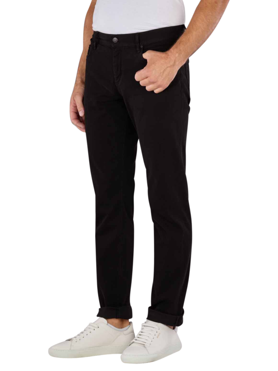 Alberto Soft Twill Pipe Jeans Regular Slim Fit in Schwarz für Männer. Diese Jeans bietet einen geraden Beinausschnitt und eine mittlere Bundhöhe. Mit ihrer Standard-Stoffdicke und einem Stretchanteil aus 97% Baumwolle und 3% Elasthan sorgt sie für hohen Tragekomfort. Sie kommt im Five-Pocket-Design und wird mit einem Reissverschluss geschlossen. Die farbige Waschung unterstreicht den modernen Look. Pflegeleicht im Schonwaschgang bei 30°C, zertifiziert nach OEKO-TEX STANDARD 100.