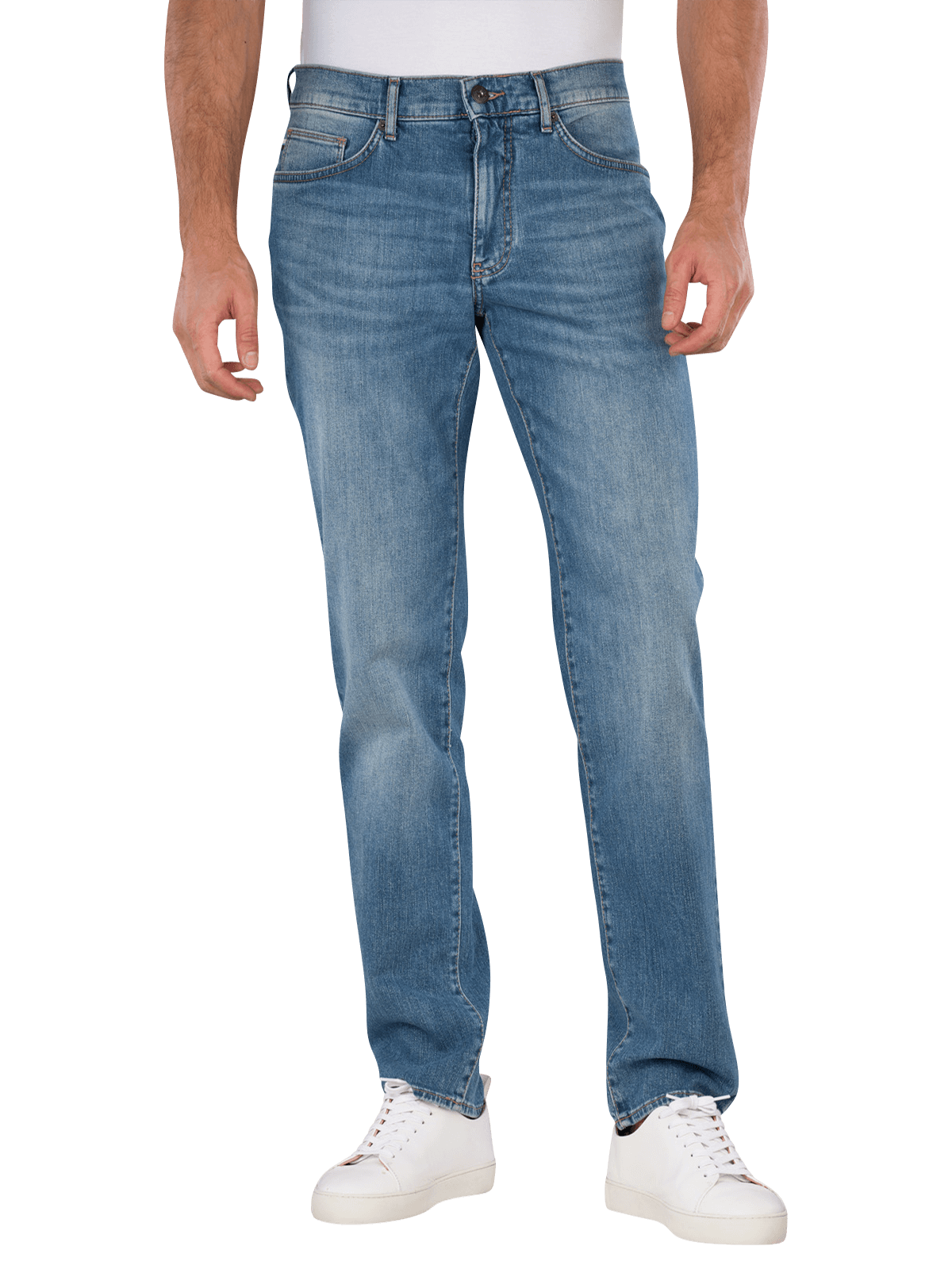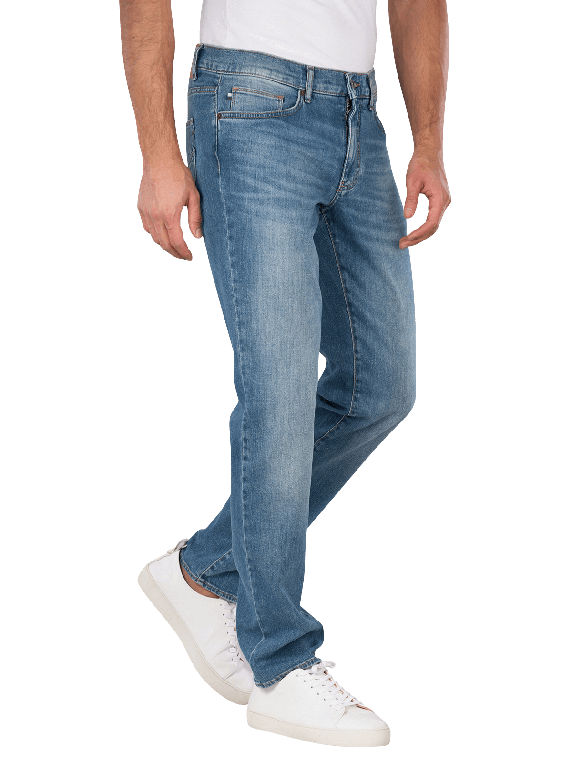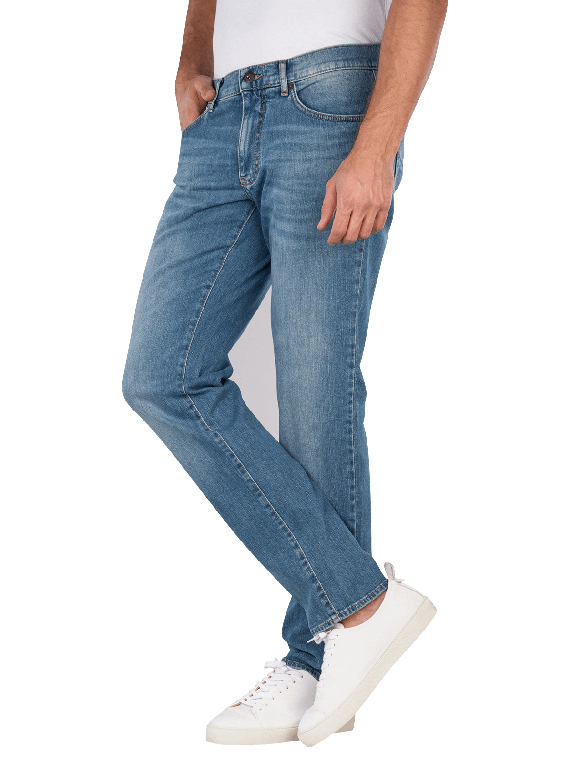 Die Brax Cadiz Jeans Straight Fit in Sky Blue bietet eine gerade Beinausschnitt und eine mittlere Bundhöhe. Sie sind aus einem dünnen, dehnbaren Stoff gefertigt, der Bewegungsfreiheit ermöglicht. Die Five-Pocket-Design sorgt für praktischen Stauraum. Die helle Waschung verleiht einen frischen Look. Diese Jeans sind pflegeleicht und können bei 30°C im Schonwaschgang gewaschen werden, was die Pflege erleichtert.