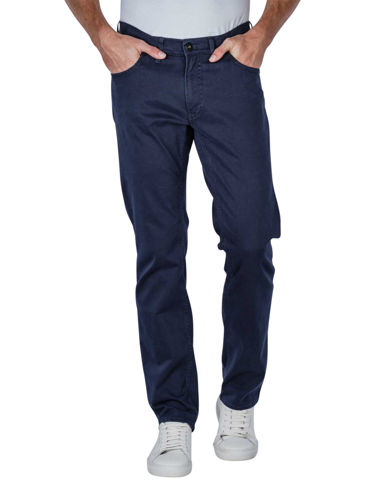 Die Brax Chuck Pants Slim Manhatten für Männer präsentieren sich in einem klassischen Dunkelblau. Mit ihrer Straight-Fit-Passform und dem geraden Beinausschnitt bieten sie einen zeitlosen Look. Der mittelhohe Bund sorgt für bequemen Tragekomfort, während der Stoff aus 97% Baumwolle und 3% Elasthan einen leichten Stretch-Effekt bietet. Ausgestattet mit einem Reissverschluss und fünf Taschen ist die Hose vielseitig und alltagstauglich. Schonend bei 30 Grad waschen und nicht bleichen.