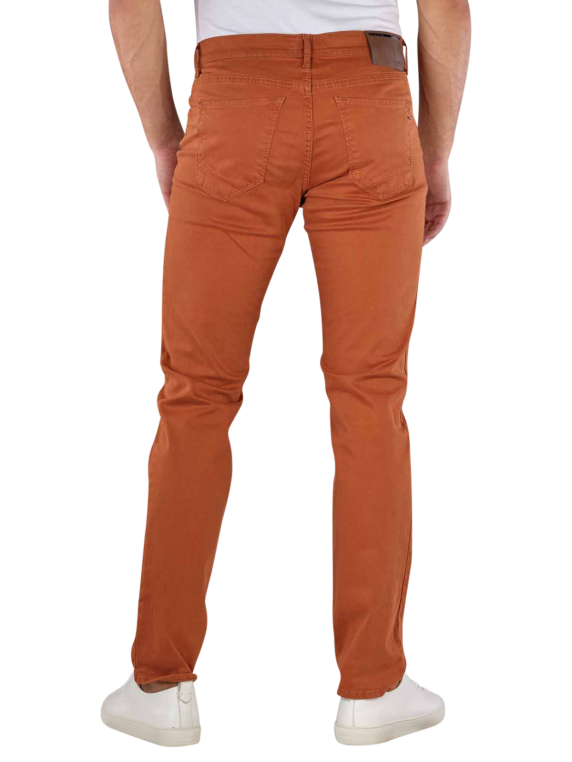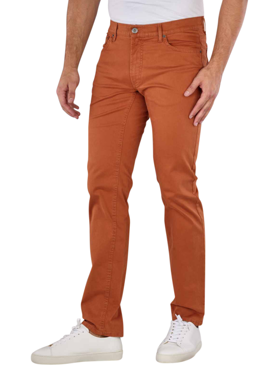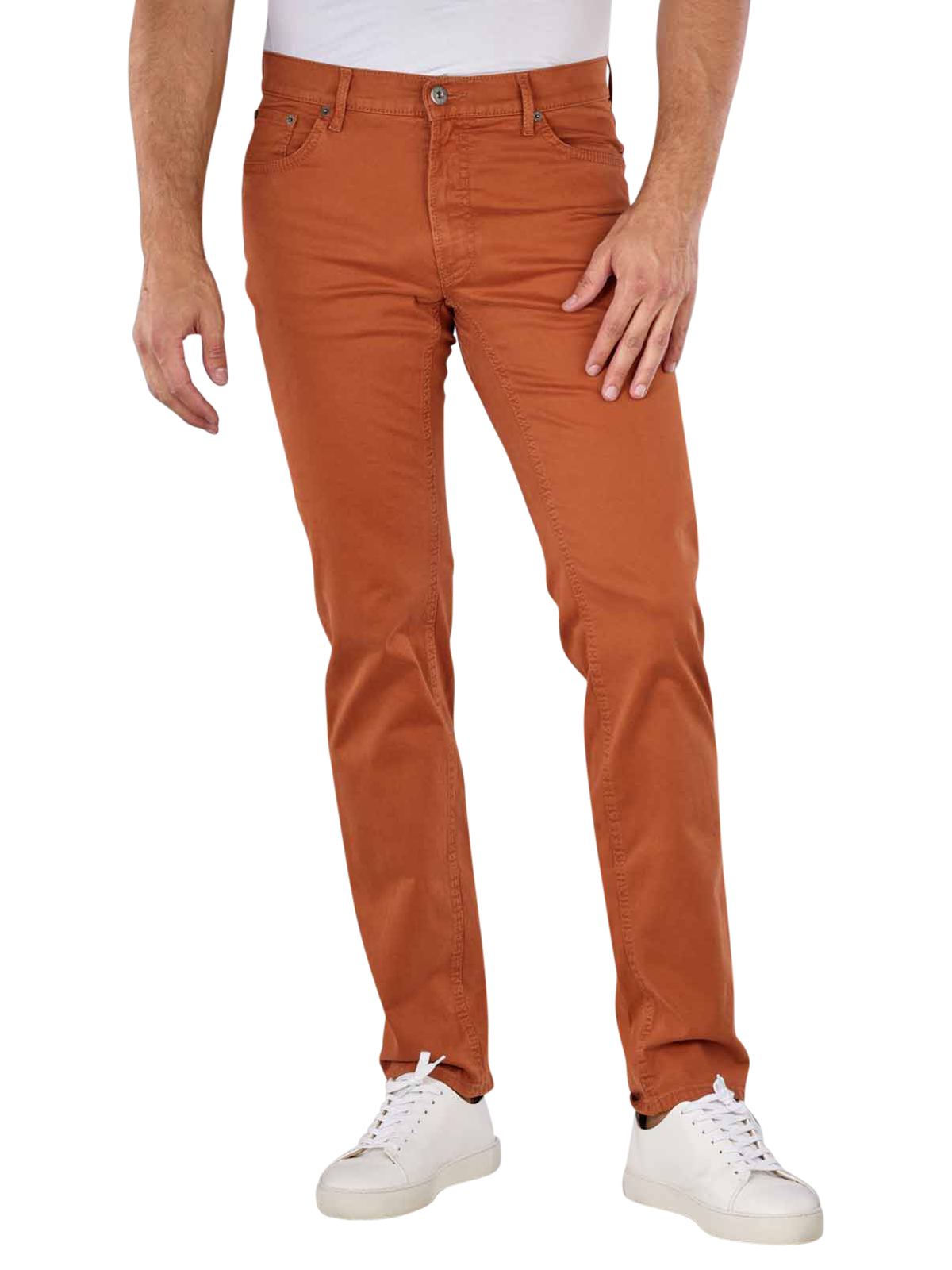 Die Brax Chuck Pants Slim in rostbrauner Farbe sind hochwertige Herren-Hosen mit einem geraden Beinausschnitt und einer mittleren Bundhöhe. Sie bieten eine Straight Fit Passform und bestehen aus einem Stoff mit Standarddicke und Stretchanteil. Diese Five-Pocket-Hose verfügt über einen Reissverschluss. Sie sind pflegeleicht, da sie im Schonwaschgang bei 30°C gewaschen und nicht gebleicht werden dürfen. Hergestellt aus 97% Baumwolle und 3% Elasthan.