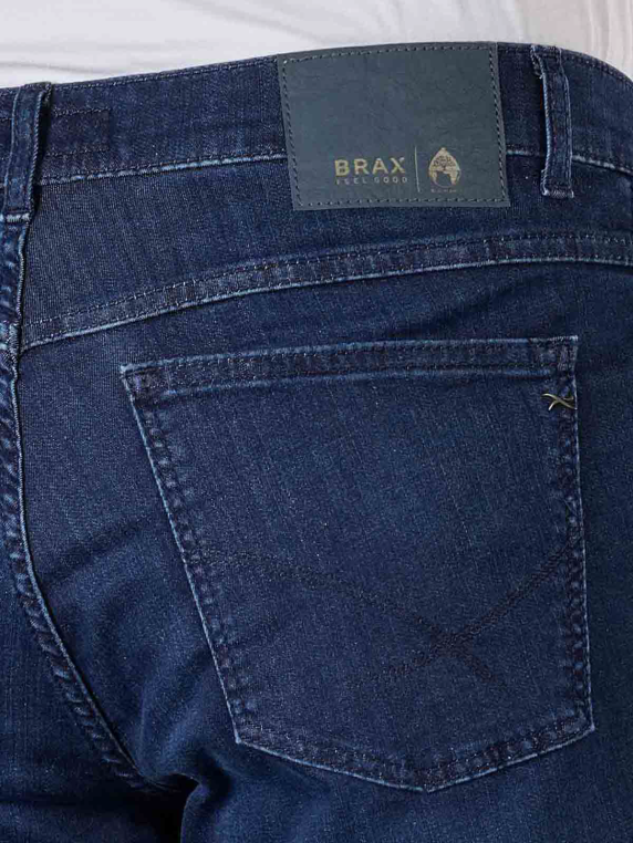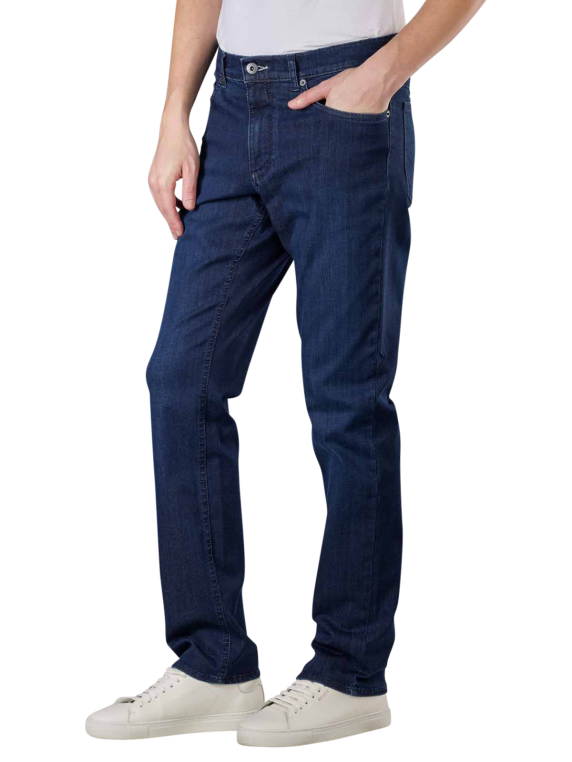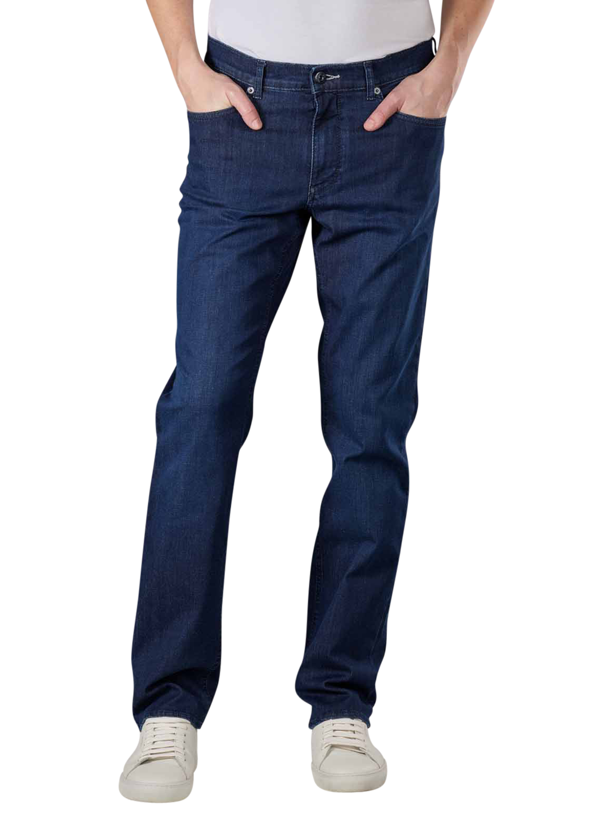 Die Brax Cooper Jeans Straight Fit in der Farbe Dark Blue Used vereint den 5-Pocket-Stil mit einer mittleren Leibhöhe und gerade geschnittenen Beinen. Sie besteht aus einem dünnen Baumwoll-Mix mit Stretchanteil, der ihr eine optimale Passform und hohen Tragekomfort verleiht. Die Herrenjeans mit verdecktem Reissverschluss und Knopf ist zudem pflegeleicht, denn sie lässt sich bei 30 °C im Schonwaschgang waschen und mässig heiss bügeln.
