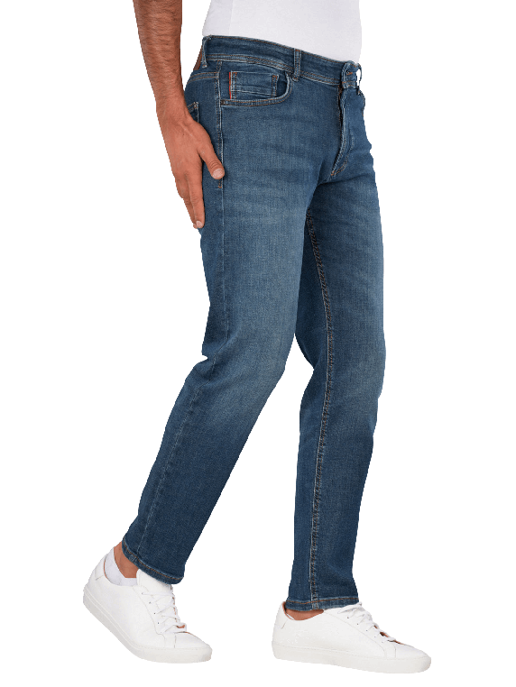 Die Camel Active 5-Pocket Jeans Regular Fit Indigo bietet eine gerade Beinausschnitt und mittlere Bundhöhe. Diese Jeans in Mittelblau ist für Männer konzipiert und überzeugt durch ihren Straight Fit. Mit einem Stretchanteil sorgt sie für hohen Tragekomfort und Bewegungsfreiheit. Die Jeans verfügt über einen Reissverschluss und ist für die Maschinenwäsche bei 40°C geeignet. Eco & Fair produziert, ist sie eine nachhaltige Wahl für den Alltag.