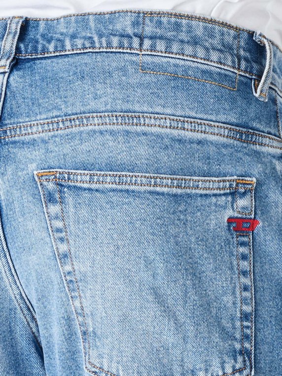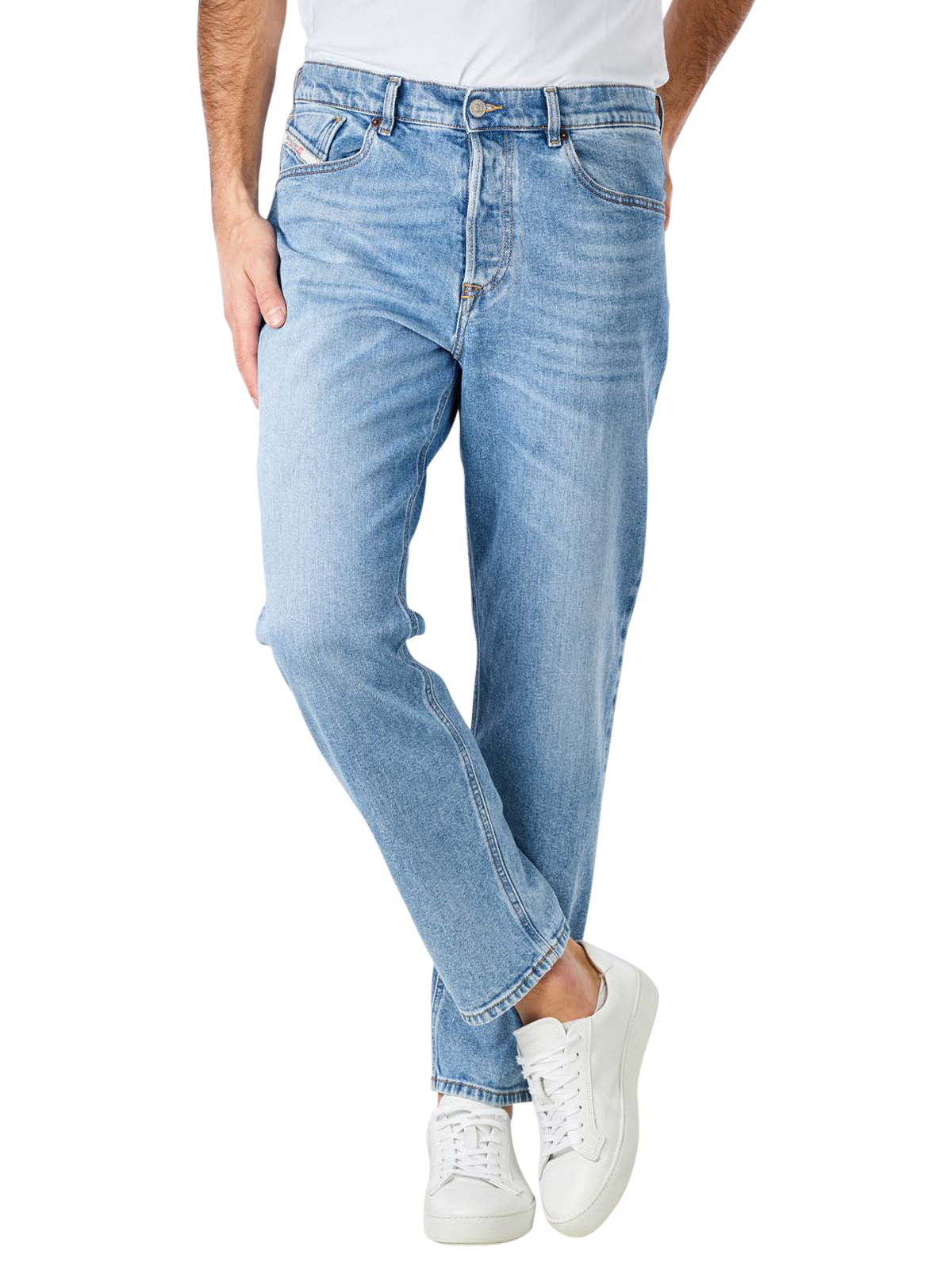 Stark ausgewaschen und mit einem Used Look versehen. zeigt sich die Diesel 2005 D-Fining Jeans Tapered Fit. Die 5-Pocket-Jeans hat eine mittlere Bundhöhe und wird mit einer Knopfleiste verschlossen. Sie besteht aus Baumwolle und Elasthan, läuft am Fuss eng zu, hat aber viel Platz am Oberschenkel. Ein besonderes Detail ist der Verzicht auf ein Leder-Logo, dafür gibt es ein rotes, eingesticktes D an einer Gesässtasche.