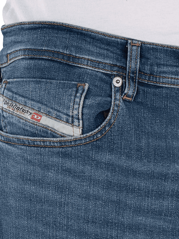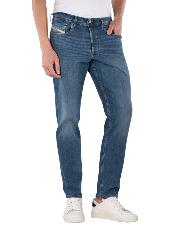 Die Diesel 2023 D-Finitive Tapered Fit Jeans in Mittelblau bieten eine moderne Passform mit einem engen Beinausschnitt und mittlerer Bundhöhe. Sie sind aus einem strapazierfähigen Material mit Stretchanteil gefertigt, was Bewegungsfreiheit gewährleistet. Die Five-Pocket-Konstruktion bietet praktischen Stauraum. Diese Jeans sind für den Schonwaschgang bei 30°C geeignet und lassen sich vielseitig kombinieren.