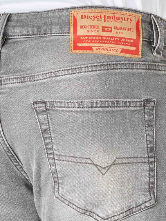 Die Diesel D-Luster Jeans Slim Fit mit Knopfleiste ist im Farbton Grey gehalten und wirkt mit intensiven Waschungen und optischen Sitzfalten top modern. Hergestellt aus robustem Denim mit Stretchanteil, mittlerer Bundhöhe und einer anliegenden Passform bietet die Herrenjeans im Five-Pocket-Style auch bei Freizeitaktivitäten einen hohen Tragekomfort. Ein weiterer Vorteil der Jeans ist die unkomplizierte Reinigung bei 30 °C im Schonwaschgang.