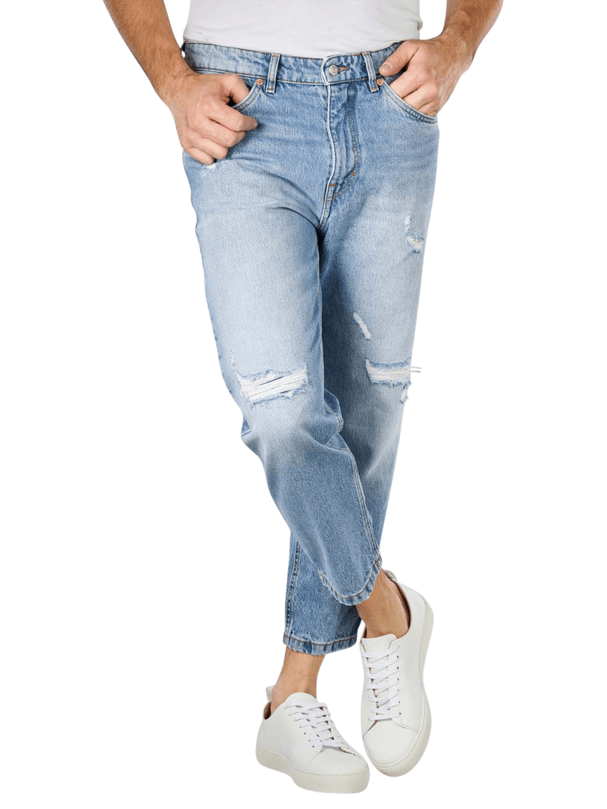 Die Drykorn Bit Jeans Regular Tapered Fit hat einen deutlich sichtbaren Destroyed Look. Betont wird diese Optik durch Kontrastnähte und ein helles Lederlogo. Am Oberschenkel weiter als am Fuss ist die Jeans dennoch schlank geschnitten und 7/8 lang. Gefertigt wird sie aus reiner Baumwolle und hat eine normale Leibhöhe. Der klassische Five-Pocket-Style mit Reissverschluss und Knopf wird mit der modernen Optik kombiniert.