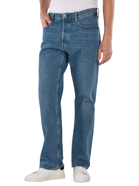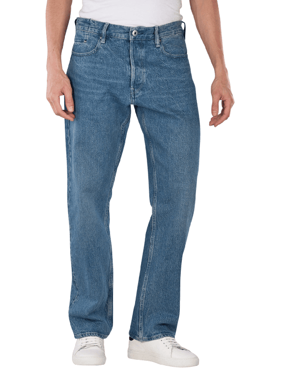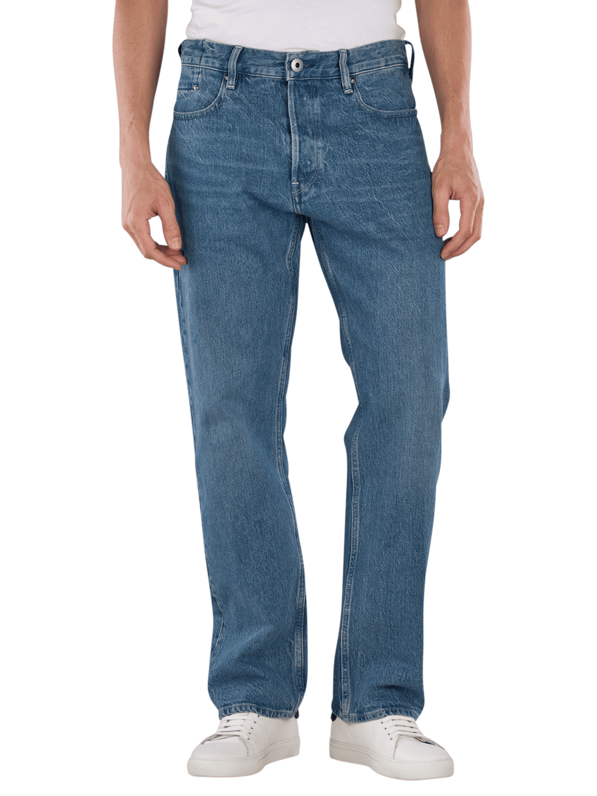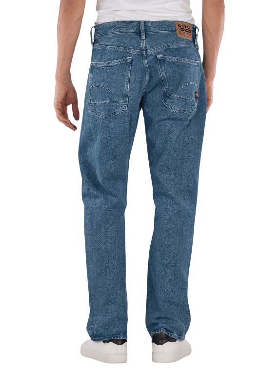 Die G-Star Dakota Regular Straight Fit Faded Watercourse Jeans bietet eine gerade und weite Passform mit mittlerer Bundhöhe. Sie ist in einem mittleren Blau gehalten und besteht aus 100% Baumwolle ohne Stretchanteil. Diese Five-Pocket Jeans verfügt über eine Knopfleiste und ist für den normalen Waschgang bei 40°C geeignet. Die Verwendung von recyceltem Material unterstützt nachhaltige Mode. Perfekt für vielseitige Freizeitlooks.
