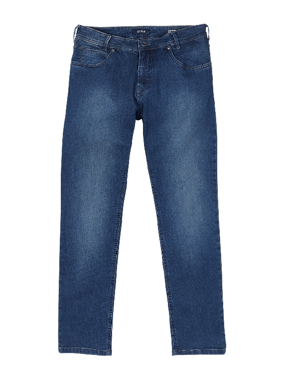 Die Gardeur Bradley Jeans für Männer ist eine moderne Five-Pocket-Hose im Straight Fit mit geradem Beinausschnitt und mittlerer Bundhöhe. In einem ansprechenden Mittelblau gehalten, bietet sie durch den Stretchanteil hohen Tragekomfort. Die mittlere Waschung und die Standard-Stoffdicke machen sie vielseitig kombinierbar. Gefertigt aus 92% Baumwolle, 6% Elastomultiester und 2% Elasthan, ist sie nach OEKO-TEX STANDARD 100 zertifiziert. Pflegeleicht bei 40°C im Normalwaschgang.