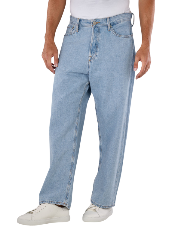 Die Jack & Jones Alex Jeans in Loose Fit und hellblauer Denim-Optik ist speziell für Männer konzipiert. Sie besticht durch einen weiten Beinausschnitt und eine hohe Bundhöhe, die für einen entspannten Tragekomfort sorgt. Die Jeans kommt ohne Stretchanteil aus und besteht aus 100% Baumwolle. Mit einer praktischen Five-Pocket-Aufteilung und Knopfleiste ist sie funktional und stylisch. Die helle Waschung gibt der Jeans einen modernen Look, zudem besteht sie aus recyceltem Material.