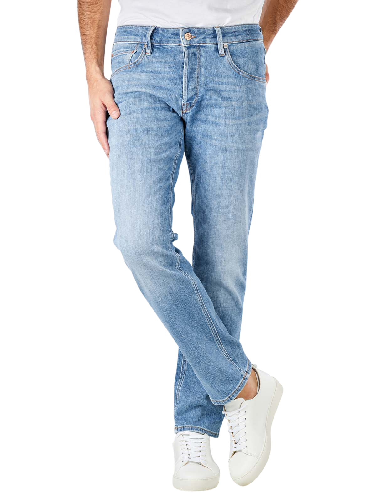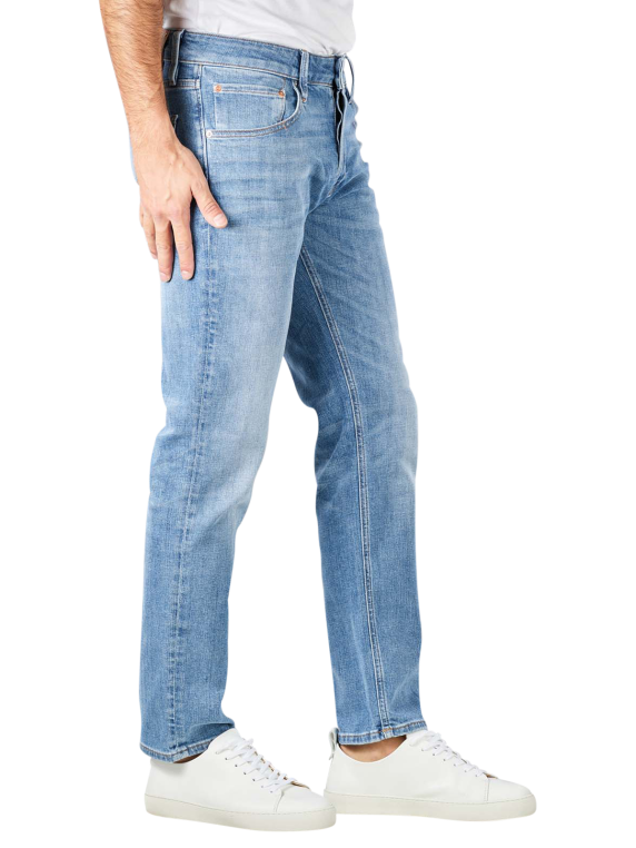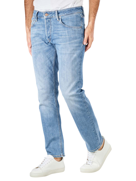 Die Davis Jeans von Jack & Jones ist eine klassische Five-Pocket-Hose, welche über eine Knopfleiste verschlossen wird. Dabei fallen die hinteren Gesässtaschen besonders gross aus und werden durch zusätzliche Nähte betont. Die Hose hat eine mittlere Bundhöhe und verläuft gerade und enger anliegend an den Beinen. Damit trotz der Slim Fit Passform die Beweglichkeit und der Tragekomfort nicht auf der Strecke bleiben, besteht die Hose aus Baumwolle, Elasthan und einem Elastomultiester.