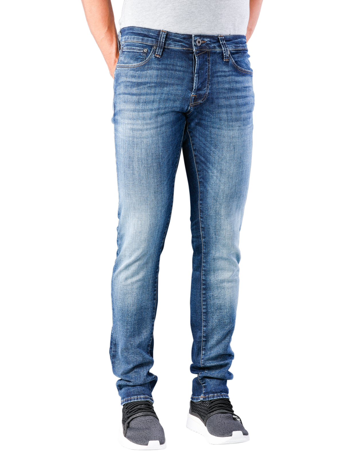 Mit ihrem Used Look gehört die Jack & Jones Glenn Icon Jeans blue denim 057 zu den beliebtesten Jeans. Details wie Ziernähte in dunklen Farben, Kontrastnähte in Orange und ein schwarzes Lederlogo am Bund gehören einfach dazu. Durch das gerade Bein hat die Jeans mit dem schlanken Schnitt dennoch viel Beinfreiheit und sorgt für einen hohen Tragekomfort.