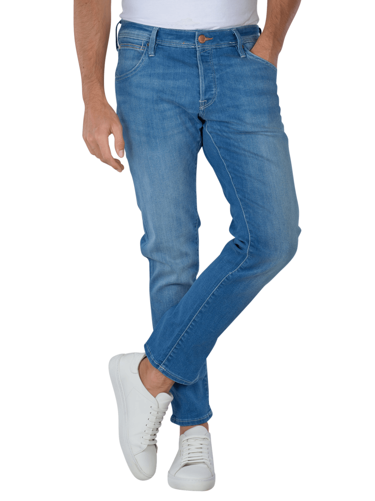 Die Jack & Jones Glenn Jeans ist eine Slim Fit Blue Denim Jeans für Männer. Sie besticht durch ihren engen Beinausschnitt und die mittlere Bundhöhe. In hellblauer Farbe bietet sie durch den dünnen Stoff und den Stretchanteil angenehmen Tragekomfort. Als klassische Five-Pocket-Hose mit Knopfleiste und heller Waschung lässt sich die Jeans bei 40°C im Normalwaschgang reinigen. Sie besteht aus 70% Baumwolle, 28% Polyester und 2% Elasthan.