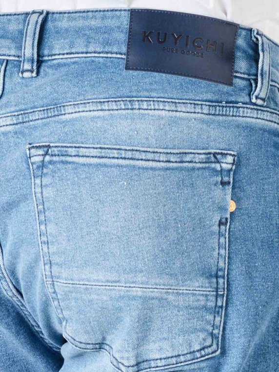 Die Kuyichi Jamie Jeans ist eine Five-Pocket Herrenjeans, die im Slim Fit Stil geschnitten ist. Sie ist Teil des Eco Programmes Recycled Material und somit nachhaltig. Sie besitzt keinen Reissverschluss, sondern eine Knopfleiste zum Zuknöpfen. Das Material der Jeans besteht aus 99 % Baumwolle und 1 % Elasthan. Sie sollte im Schonwaschgang gewaschen und nicht im Trommeltrockner getrocknet werden.