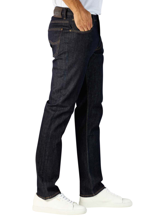 Die Lee Brooklyn Jeans Straight rinse ist ein Klassiker unter den Herrenjeans. Die dunkelblaue Tönung, die hellbraunen Nähte und der Echtlederpatch machen die Jeans zu einem beliebten Begleiter für geschäftliche und private Anlässe. Durch den geraden Beinschnitt und die leichte Stretch-Qualität haben Männer mit dieser Jeans viel Bewegungsfreiheit und durch das hochwertige Material ein angenehmes Tragegefühl.