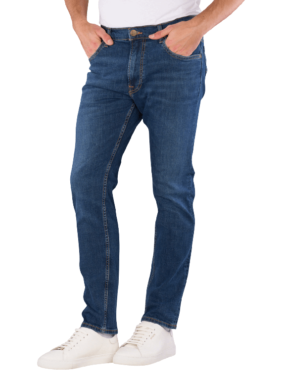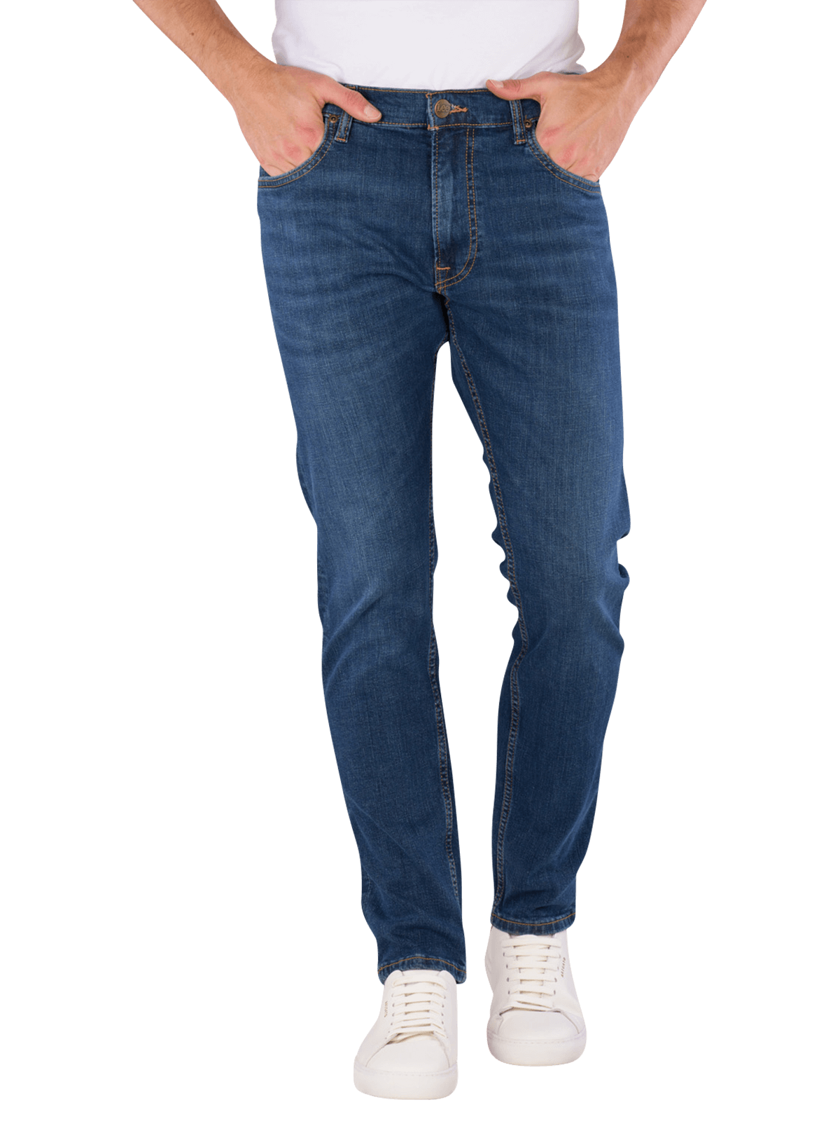Die Lee Rider Jeans in Slim Fit präsentiert sich in einem stilvollen Dunkelblau und überzeugt durch ihre mittlere Bundhöhe sowie den engen, geraden Beinausschnitt. Mit einem praktischen Five-Pocket-Design und einem robusten Reissverschluss ist sie ideal für den modernen Mann. Der hochwertige Stoff, bestehend aus 98% Baumwolle und 2% Elasthan, sorgt für einen angenehmen Sitz und optimale Bewegungsfreiheit. Pflegeleicht und langlebig, lässt sich diese Jeans vielseitig kombinieren und bringt einen Hauch von Casual-Chic in jede Garderobe.