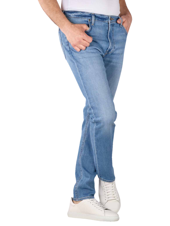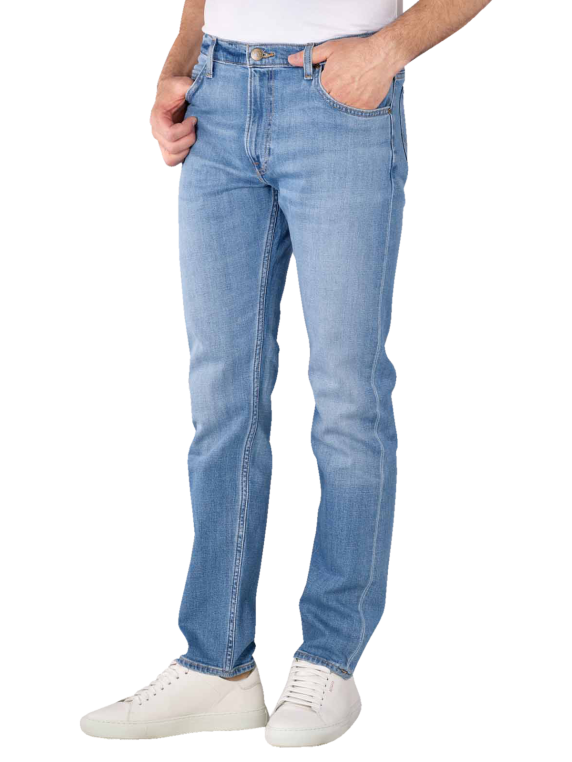 Die Lee Rider Jeans im Slim Low Fit und dem Farbton Worn In Travis ist mit dem Indigood-Schaum-Färbeprozess behandelt und besticht mit leichten Waschungen und den traditionellen 5-Pocket-Look. Ihren klassischen Stil vereint die Herrenjeans mit einem mittelhohen Bund und engen, gerade verlaufenden Beinen, während der Baumwoll-Denim mit Stretchanteil einen hohen Tragekomfort verleiht. Waschbar bei 30 °C und trocknergeeignet ist die Jeans ausserdem pflegeleicht.