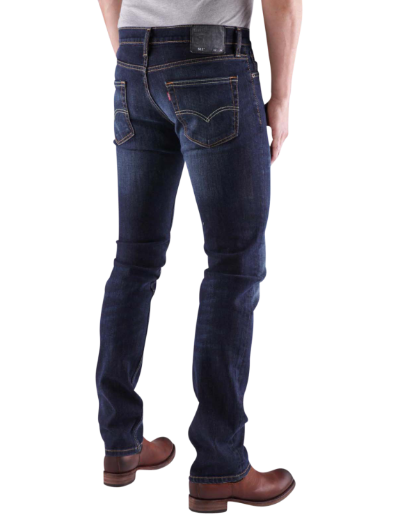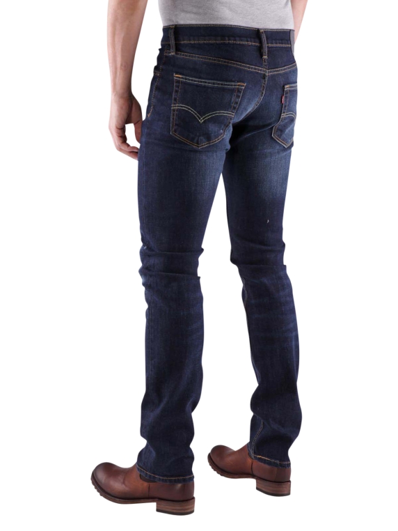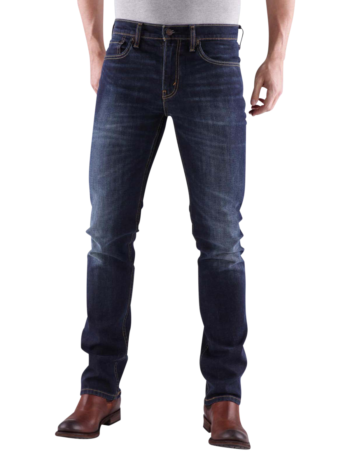 Diese Levi's 511 Slim Fit Jeans trägt die Farbe Sequoia. Die Passform der Hosenbeine liegt zwischen dünn und gerade. So liegen die Hosenbeine eng an, aber schränken die Bewegungsfähigkeit nicht ein. Die Hose ist schlank am Oberschenkel und der Beinöffnung geschnitten und zeigt einen langen, hohen Look.