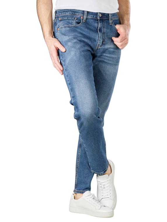 Die Levi's 512 Jeans ist in einem Slim Fit/Tapered Fit Schnitt geschnitten und hat eine mittelhohe Bundhöhe. Der Oberschenkel sowie der Beinausschnitt verläuft eng, was die Jeans sehr schick aussehen lässt. Die Five-Pocket Jeans besteht aus 99 % Baumwolle und 1 % Elasthan. Gewaschen werden sollte sie bei 30 °C im Normalwaschgang. Sie ist trocknergeeignet und kann normal im Trockner getrocknet werden.