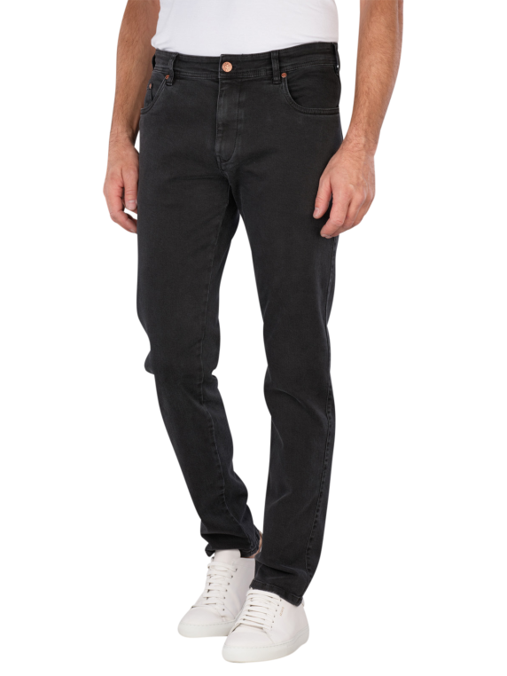 Die Meyer M5 Five Jeans Slim Fit in Schwarz gewaschen bietet eine gerade Beinausschnitt und mittlere Bundhöhe. Sie ist aus einem Standarddicken Stoff mit Stretchanteil gefertigt, was für Bewegungsfreiheit sorgt. Die Jeans verfügt über ein klassisches Five-Pocket-Design und einen Reißverschluss. Sie ist pflegeleicht und kann bei 40°C im Normalwaschgang gewaschen werden. Diese Jeans kombiniert Funktionalität mit einem modernen Look.