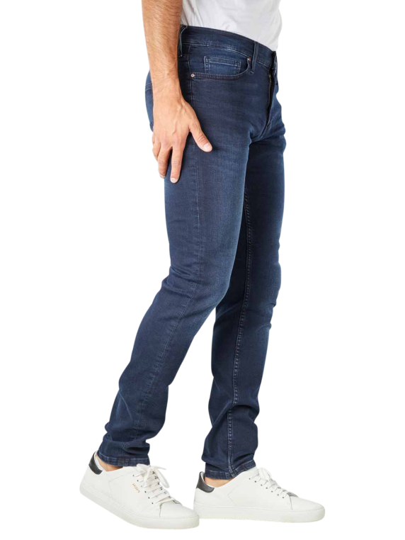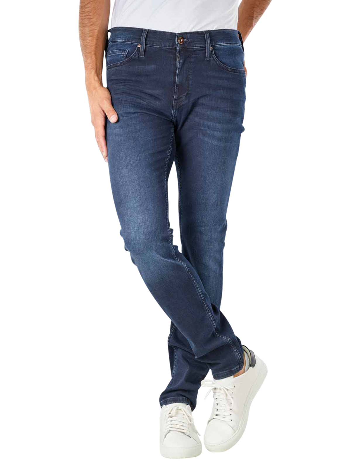 Die Mustang Low Rise Frisco Jeans Slim Fit im Farbton Blue Black hat einen engen Beinverlauf und sitzt durch die normale, mittlere Leibhöhe bequem unterhalb des Bauchnabels. Hergestellt aus elastischem Denim bietet die Herrenjeans trotz Slim Fit einen bequemen Sitz und optimale Bewegungsfreiheit. Waschbar bei 30 °C im Normalwaschgang überzeugt die Jeans darüber hin aus mit einer unkomplizierten Reinigung.