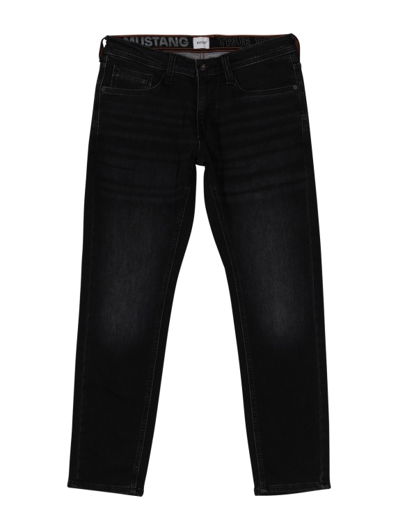 Die Mustang Oregon Jeans Slim Fit in Schwarz ist eine stylische Jeans für Männer. Mit einem engen Beinausschnitt und mittlerer Bundhöhe vereint sie Komfort und modischen Chic. Die Jeans bietet eine Five-Pocket-Optik und einen praktischen Reissverschluss. Gefertigt aus 82% Baumwolle, 17% Polyester und 1% Elasthan, überzeugt sie durch ihre Standard-Dicke und den Stretchanteil. Diese schwarze Denim ist pflegeleicht im Normalwaschgang bei 30°C.