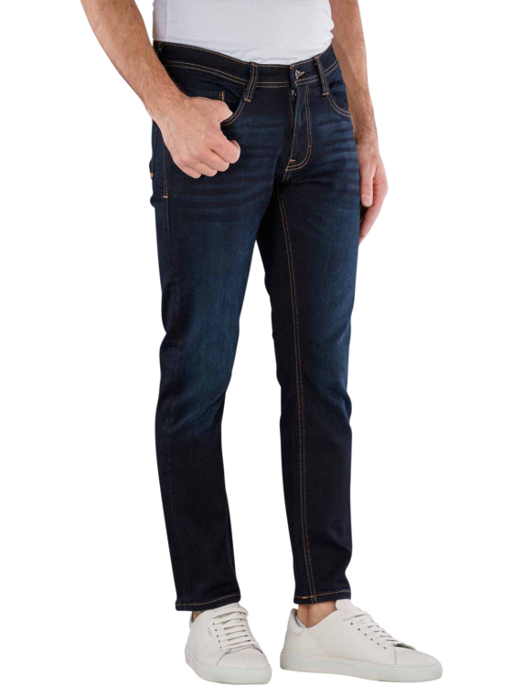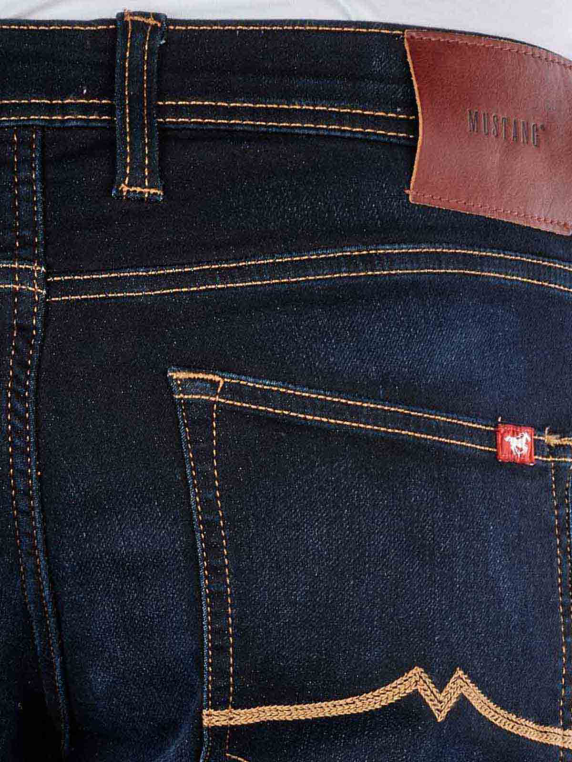 Die Mustang Oregon Jeans Slim Fit Blue Rinse ist eine stilvolle Herrenjeans in Dunkelblau, ideal für modebewusste Männer. Mit eng anliegenden Beinausschnitten und mittlerer Bundhöhe kombiniert sie Komfort und trendigen Look. Der Tapered Fit sorgt für eine moderne Silhouette, während der Stretchanteil Bewegungsfreiheit ermöglicht. Die Jeans verfügt über einen praktischen Reissverschluss und das klassische Five-Pocket-Design. Gefertigt aus 82% Baumwolle, 17% Polyester und 1% Elasthan, bietet sie eine langlebige und bequeme Passform.