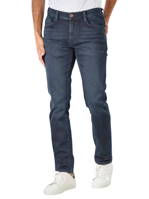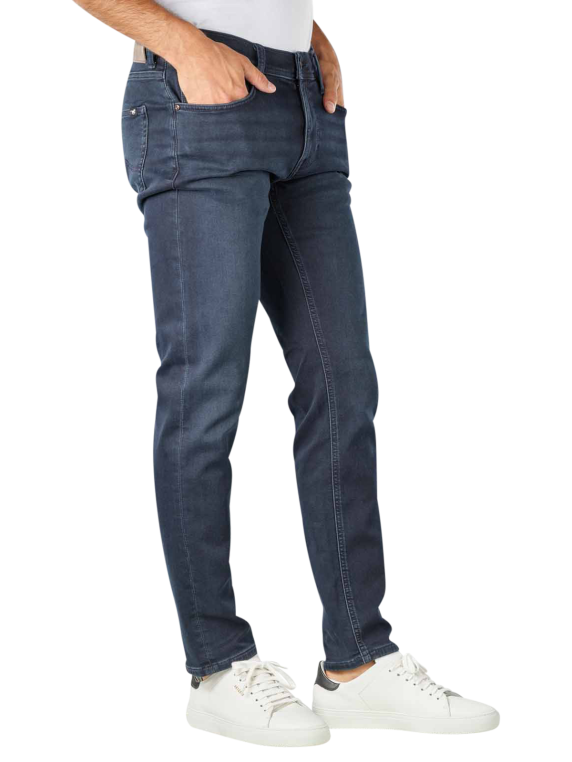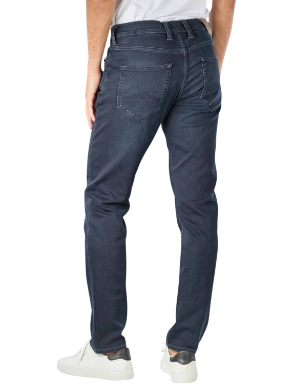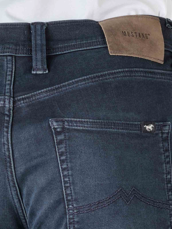 Stylische Herren-Jeans von Mustang mit engem Schnitt in der Farbe Schwarz-Blau. Die Jeans im Five-Pocket-Stil mit Reissverschluss hat eine mittlere Bundhöhe. Der kleine Stretchanteil im Jeansstoff sorgt für einen hohen Tragekomfort. Besonders hervorzuheben ist bei diesem Modell der genutzte Rohstoff. Die Baumwolle stammt aus dem grössten Nachhaltigkeitsprogramm für diese Fasern.  Die Better-Cotton-Initiative (BCI) unterstützt die nachhaltige Produktion und faire Behandlung der Produzenten.