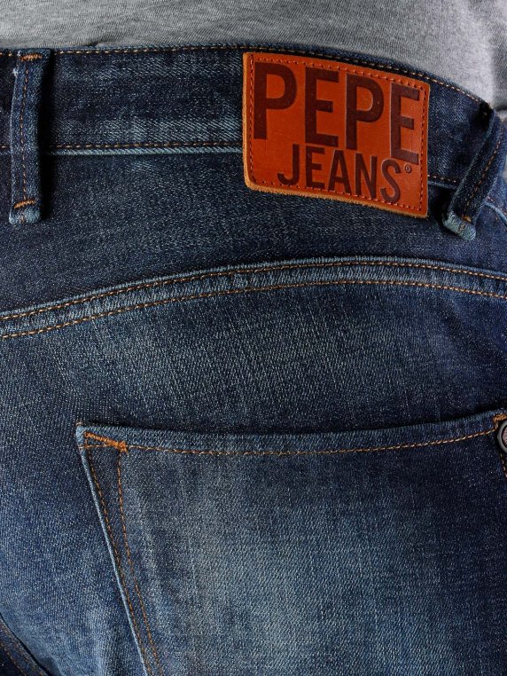 Die Pepe Jeans Cash Deep 12OZ used deep denim ist mit ihren auffälligen Used-Effekten und der lässigen, bequemen Passform ein attraktiver Blickfang. Sie überzeugt außerdem mit Details wie dem Leder-Logo am rückwärtigen Bund, dem Five-Pocket-Style und dem Knopfverschluss.