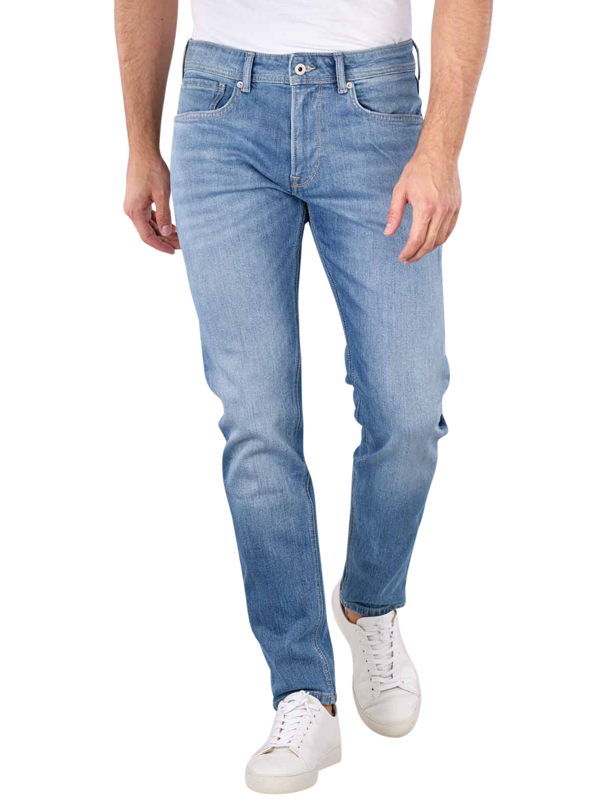 Die Pepe Jeans Stanley Tapered Fit in Hellblau für Männer sind stylische Jeans mit mittlerer Bundhöhe und engem Beinausschnitt. Sie bestehen aus 99% Baumwolle und 1% Elasthan, bieten eine Standard Stoffdicke und enthalten Stretchanteile für zusätzlichen Komfort. Der Reissverschluss und die klassische Five-Pocket-Konfiguration runden das Design ab. Die hell gewaschenen Jeans sind bei 40°C normal waschbar und für den Alltag geeignet.