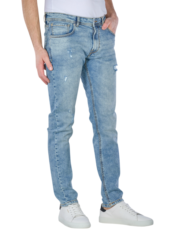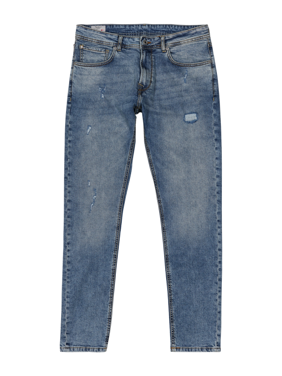 Entdecken Sie die Pepe Jeans Stanley Tapered Fit in einem ansprechenden Mid Blue! Diese Herrenjeans kombiniert einen modernen, tapered Schnitt mit einem bequemen Stretchanteil, der Bewegungsfreiheit bietet. Mit einer blauen Waschung, die leicht destroyed ist, verleiht sie jedem Outfit einen lässigen Touch. Die Five-Pocket-Stil und der Reissverschluss runden den funktionalen Look ab. Hergestellt aus 99% Baumwolle und 1% Elasthan, ist sie ideal für den Alltag. Pflegeleicht bei 40°C normalwaschbar. Perfekt für modische Männer!