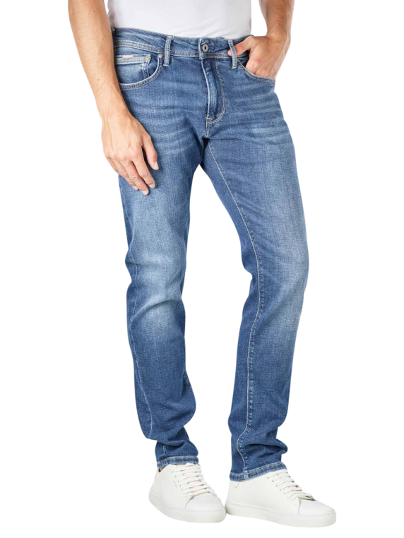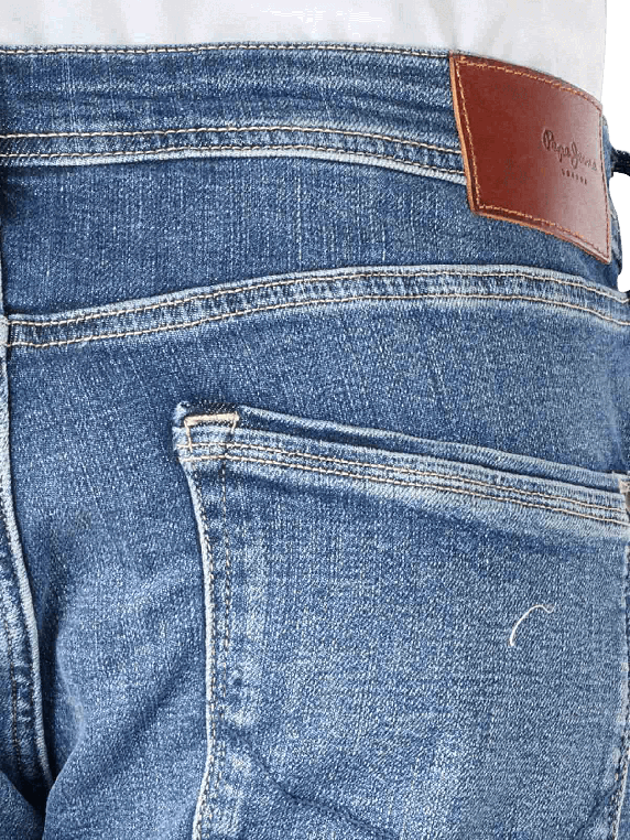 Die Pepe Jeans Stanley Tapered Fit für Herren ist in hellem, mittleren und dunklem Blau erhältlich. Sie besteht zu einem überwiegenden Teil aus Baumwolle, besitzt aber auch einen Polyester- und Elastananteil. Es ist ein Stretchanteil vorhanden, als Tapered Fit Jeans wird sie nach unten hin enger. Man kann sie bei einer Temperatur von 40°C waschen und sollte sie nicht zu heiß bügeln.