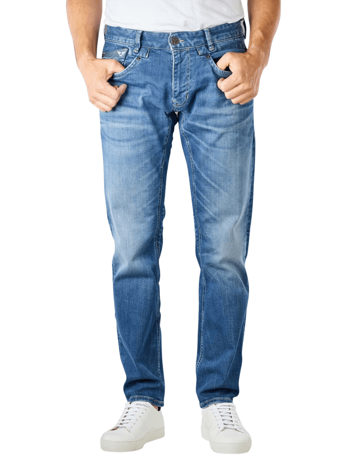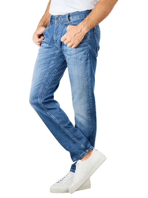 Die PME Legend Commander Jeans Relaxed Fit ergänzt Dein Outfit zu einem lockeren Look. Der Fresh Mid Blue Farbton und die angesagten Waschungen sind das Highlight der Jeans. Durch den Stretchanteil sitzt die Jeans im Relaxed Fit bequem und angenehm. Die Five Pocket Jeans hat einen Reissverschluss und einen mittelhohen Bund. Beinausschnitt und Oberschenkel der Herren Jeans sind gerade geschnitten.