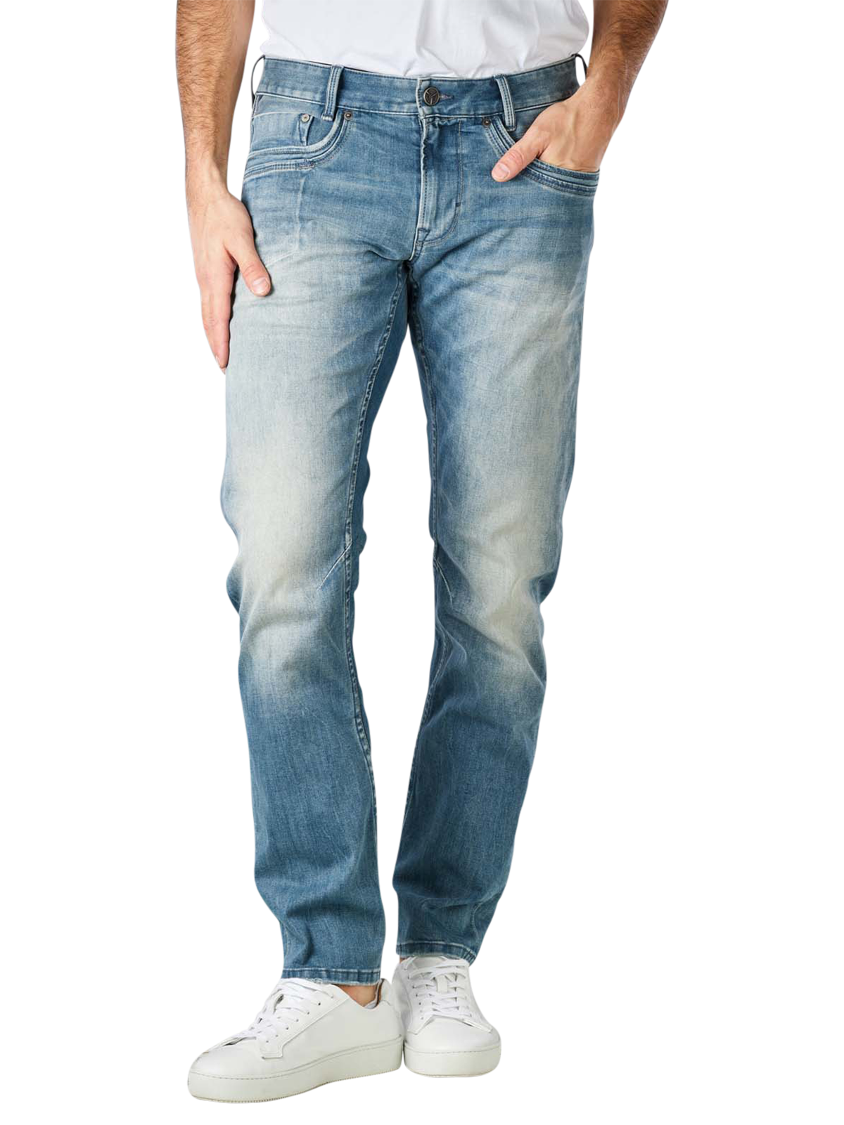 Die PME Legend Skymaster Tapered Fit ist eine Five-Pocket-Jeans mit vielen individuellen Details, die sie unverwechselbar machen. Dazu gehören sehr helle Waschungen sowie doppelte Vorder- und Gesässtaschen. Zudem überzeugt die PME Legend Skymaster mit einem klassischen verdeckten Reissverschluss. Ihre am Oberschenkel gerade und unten eng geschnittene Passform verleiht der Casual-Jeans mit Stretchanteil zeitlosen Chic. Am hinteren Bund befindet sich ein hellbraunes PME-Legend-Logo.