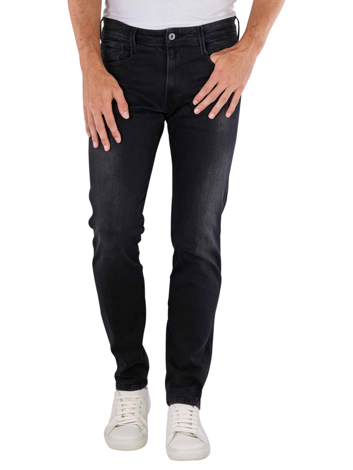 Die Replay Anbass Jeans Slim Fit in Black Wash ist eine stilvolle schwarze Jeans für Männer. Sie bietet eine schlanke Passform mit einem mittelhohen Bund und einem engen Beinausschnitt. Hergestellt aus 98% Baumwolle und 2% Elasthan, verfügt sie über einen Stretchanteil für zusätzlichen Komfort. Ausgestattet mit einem Reissverschluss und im Five-Pocket-Design, eignet sie sich ideal für den Alltag. Pflegehinweis: Normalwaschgang 30°C, Nicht bleichen.