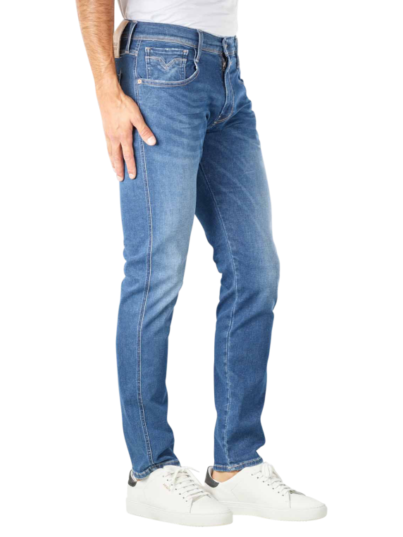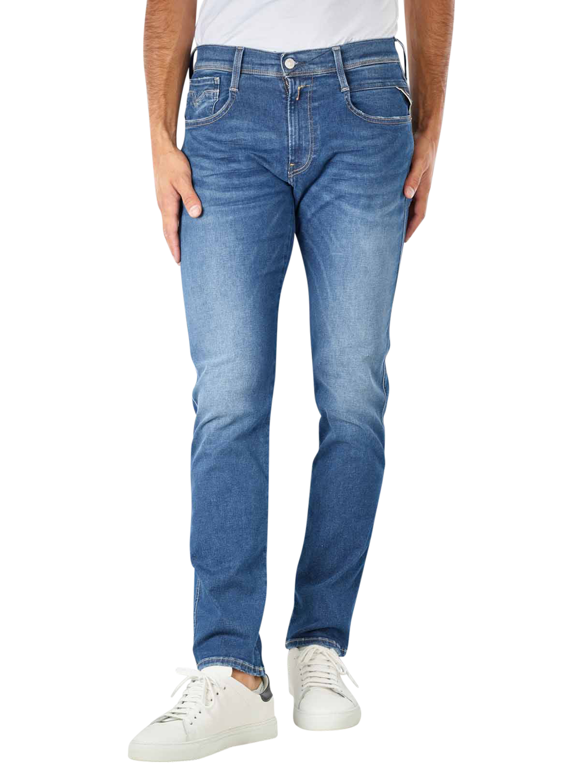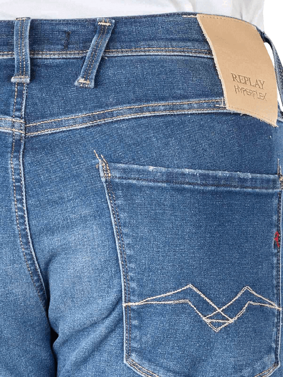 Die Replay Anbass Jeans Slim Fit im Farbton Blue besteht aus einem hochelastischen Baumwolldenim aus recyceltem Material und lässt sich mit Knopf und Reissverschluss verschliessen. Sie ist im klassischen Five-Pocket-Stil gehalten und bietet mit mittlerer Taille und einem zur Unterkante enger werdenden Bein auch bei Freizeitaktivitäten einen hohen Tragekomfort. Die Replay Anbass Jeans Slim Fit ist zudem sehr pflegeleicht und bei 30 °C waschbar.