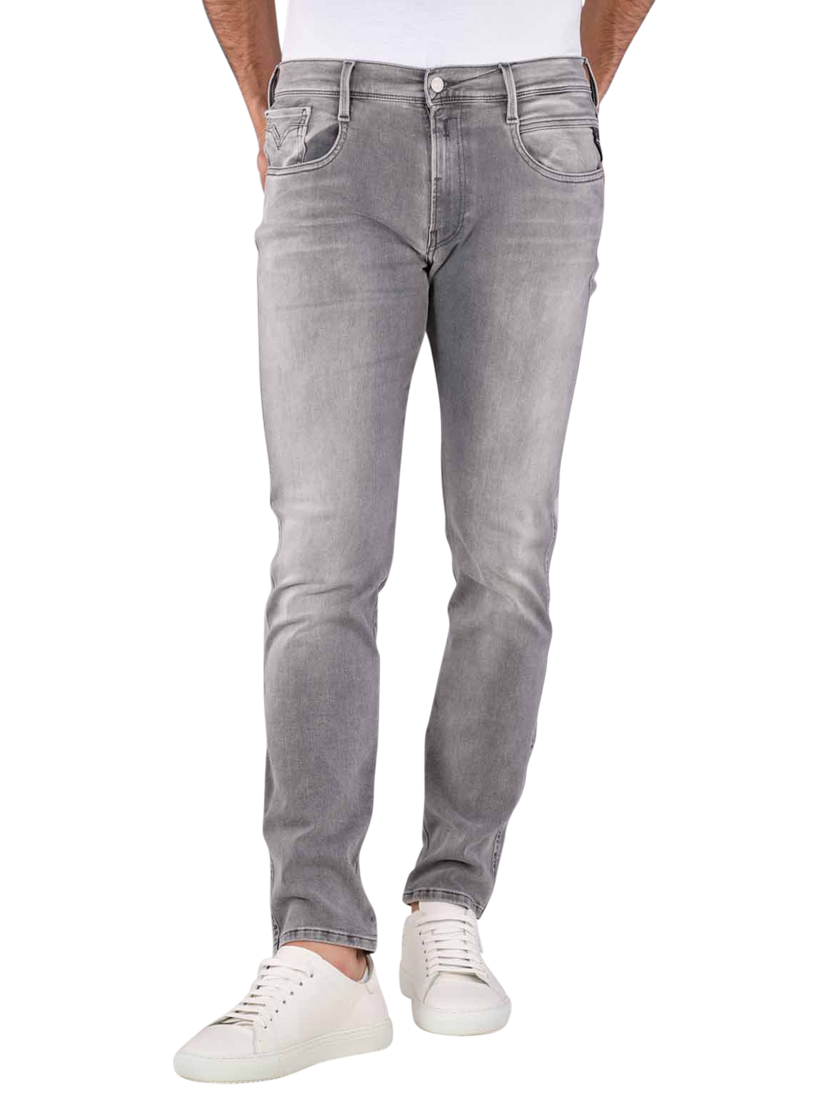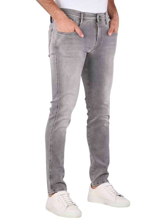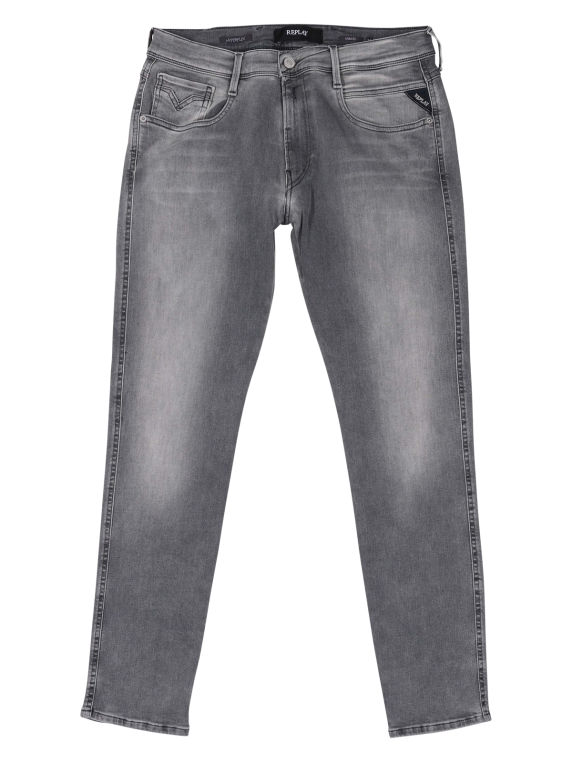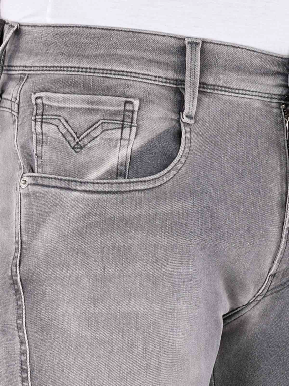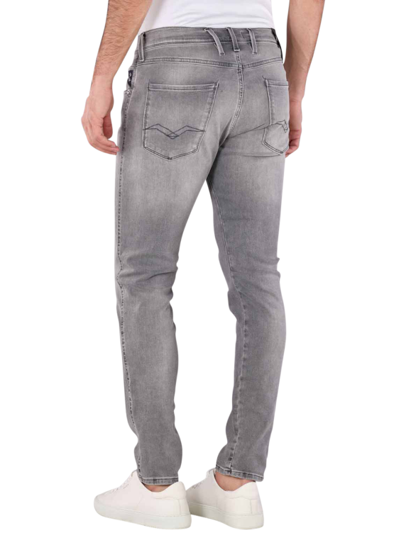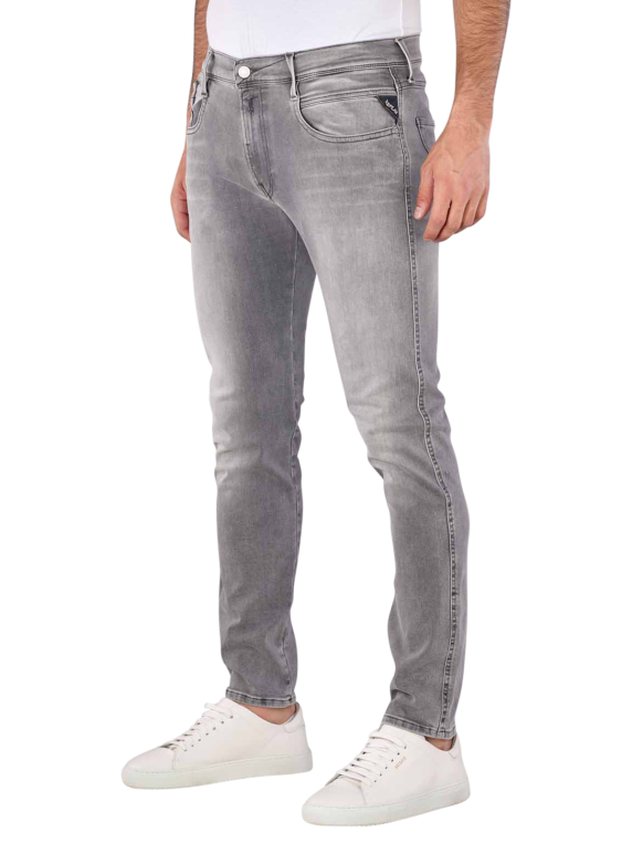 Die Replay Anbass Herren Jeans in der Farbe Grey ist eine schöne Jeans im Casual-Stil. Die Five-Pocket Jeans ist in der Passform Slim Fit geschnitten. Sie besitzt daher eine mittlere Bundhöhe, einen engen Beinausschnitt und eng geschnittene Oberschenkel. Die Replay Anbass Jeans ist aus 91 % Baumwolle, sechs % Elastomultiester und drei % Elasthan hergestellt. Sie besitzt somit einen Stretchanteil. Im Schonwaschgang kann sie bei 30 Grad gewaschen werden.