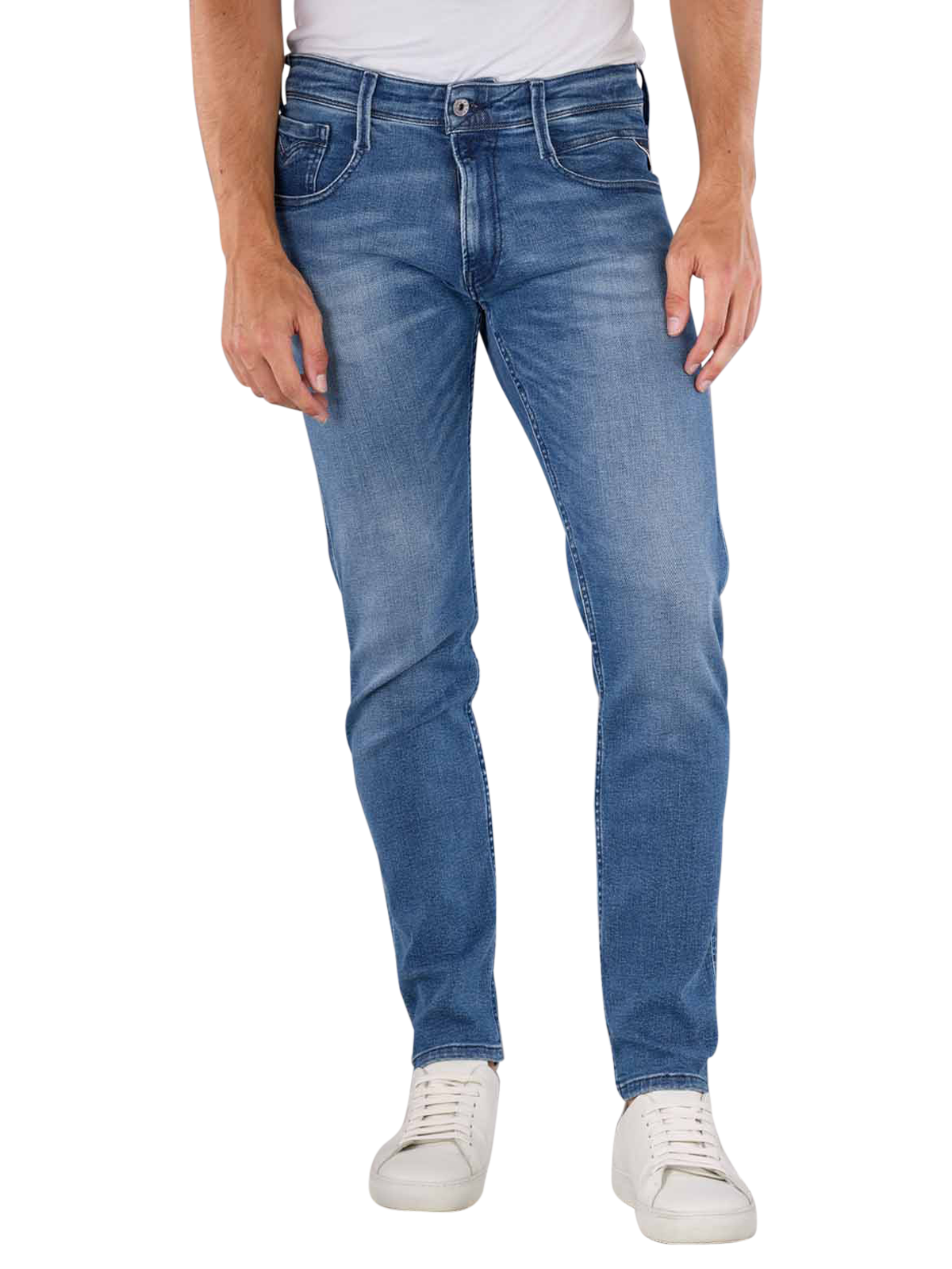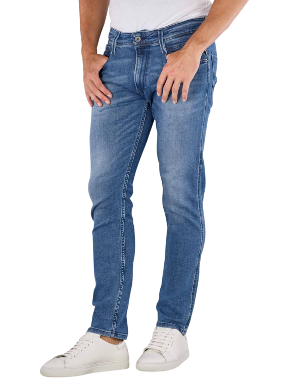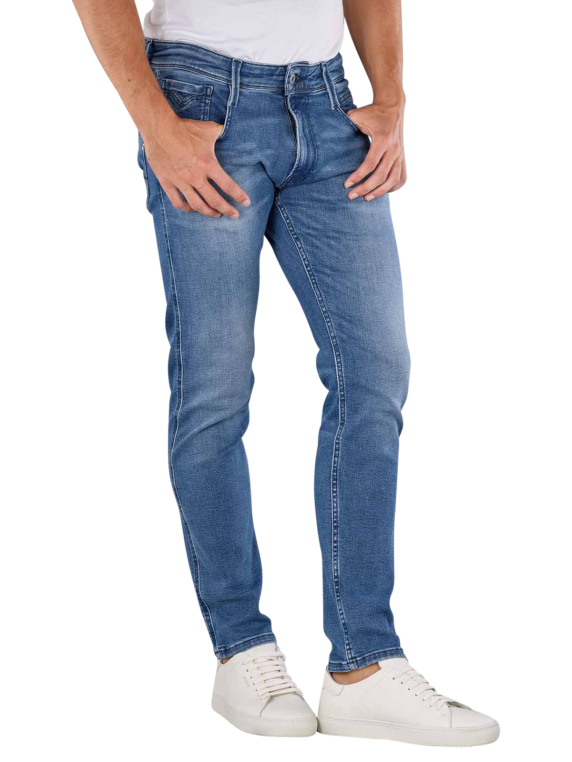 Die Replay Anbass Jeans Slim Fit in Mittelblau ist ideal für Männer, die Wert auf Stil und Komfort legen. Mit einer mittleren Bundhöhe und einer engen Passform bietet sie eine moderne Silhouette. Hergestellt aus 94% Baumwolle, 4% Elastomultiester und 2% Elasthan, kombiniert sie Stabilität mit Stretch-Komfort. Typisch für Five-Pocket-Design und ausgestattet mit einem Reissverschluss, ist sie in mittlerer Waschung erhältlich und pflegeleicht bei 30°C.