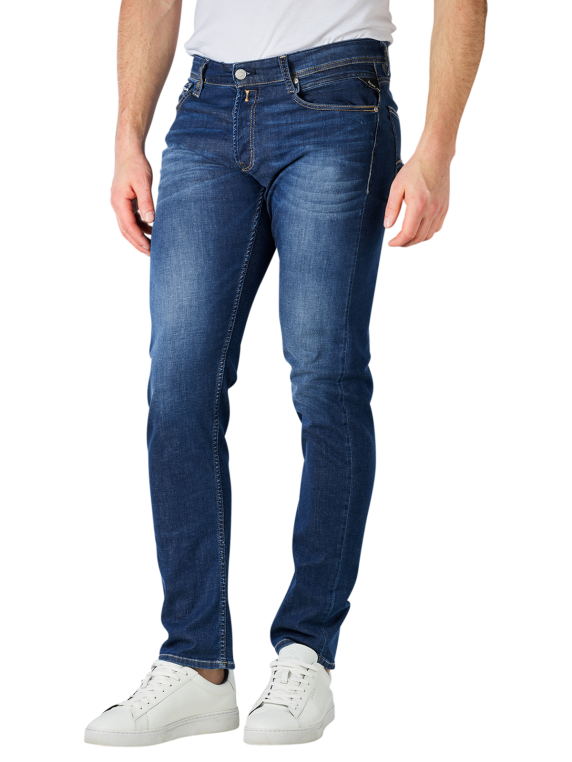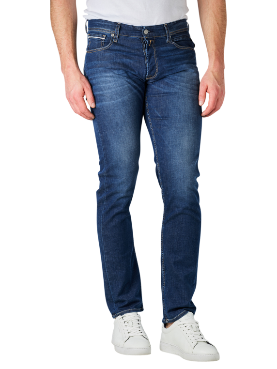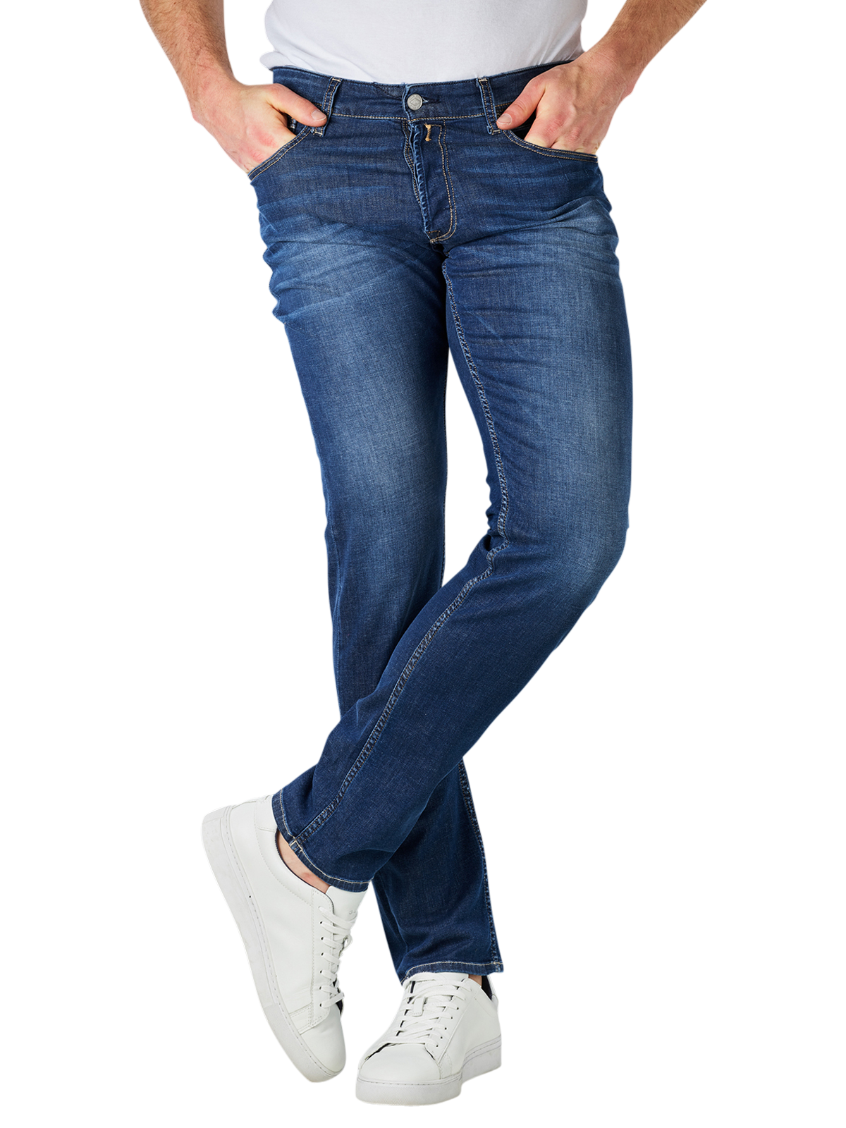 Die Replay Grover Jeans Straight Fit ist eine lässige Five-Pocket-Jeans in der Farbe Dark Blue. Die Beine sind gerade geschnitten, die Bundhöhe ist normal. Die Jeans, die aufgrund seiner klassischen Optik ein echter Allrounder ist, wird mit einer verdeckten Knopfleiste verschlossen. Die hellen Ziernähte bilden zudem einen harmonischen farbigen Kontrast. Die Jeans mit Stretchanteil kann bei 30 °C im Schonwaschgang gewaschen werden.