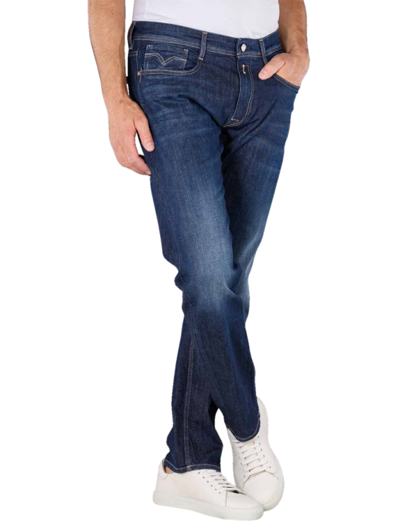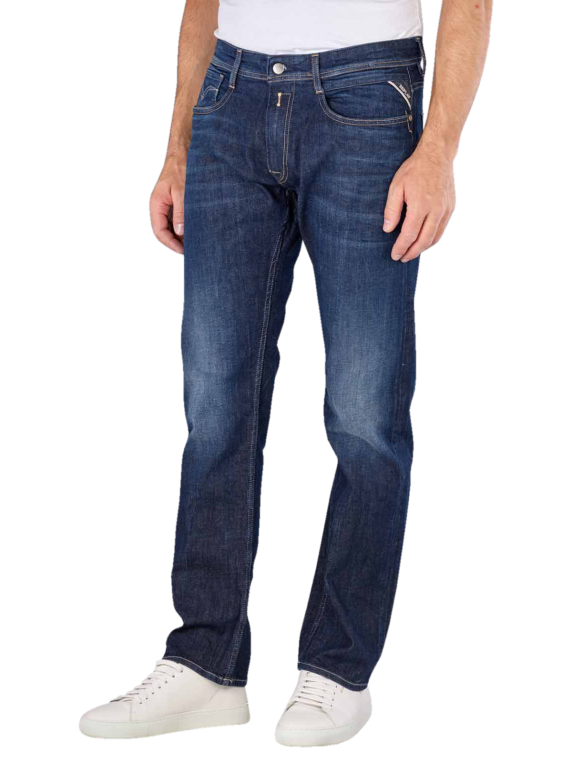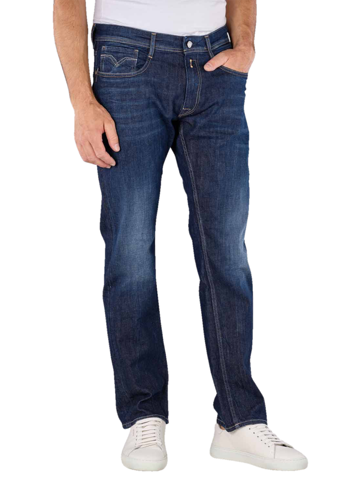 Die Replay Rocco Jeans bieten einen Comfort Fit im Dunkelblau. Sie sind für Männer konzipiert und haben eine mittlere Bundhöhe sowie einen geraden Beinausschnitt. Diese Five-Pocket-Jeans sind aus einem elastischen Materialmix mit 99% Baumwolle und 1% Elasthan gefertigt. Sie verfügen über einen Reissverschluss und eine dunkle Waschung. Die Jeans sind für den Schonwaschgang bei 30°C geeignet und sollten nicht gebleicht werden.