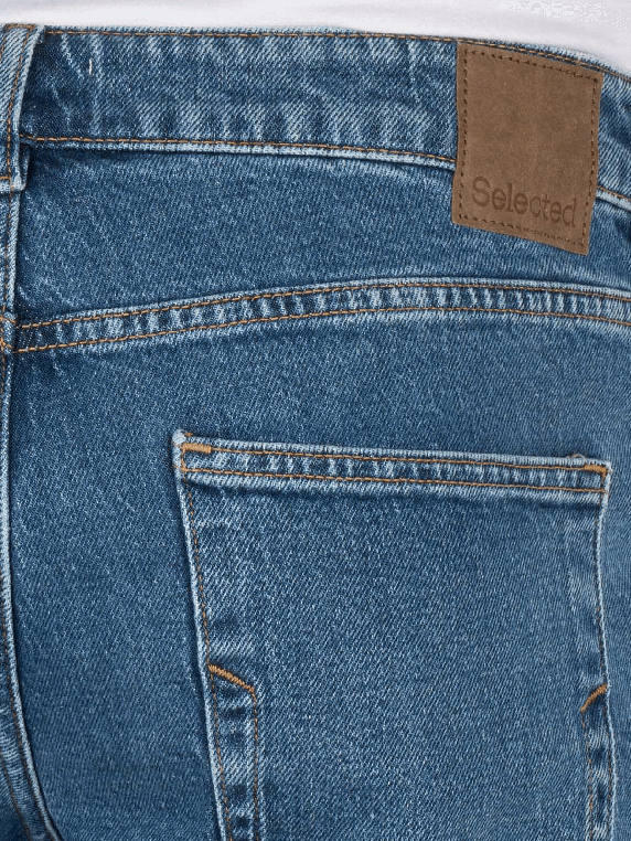 Die Selected Ben Kori Jeans Slim Fit in Mittelblau bietet eine engere Passform mit geradem Beinausschnitt und mittlerer Bundhöhe. Sie sind aus einem bequemen Stretchmaterial gefertigt, das Bewegungsfreiheit ermöglicht. Die Five-Pocket-Design sorgt für praktischen Stauraum. Diese Jeans sind für den normalen Waschgang bei 40°C geeignet und bieten eine mittlere Waschung, die vielseitig kombinierbar ist.