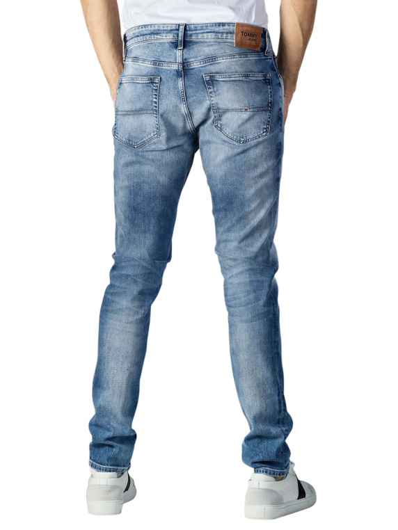 Passend zum Megatrend Tapered-Leg überzeugt die schicke Herrenjeans Austin Slim Tapered wilson light blue von Tommy Jeans durch den hochwertigen Materialmix und die Flexibilität beim Kombinieren