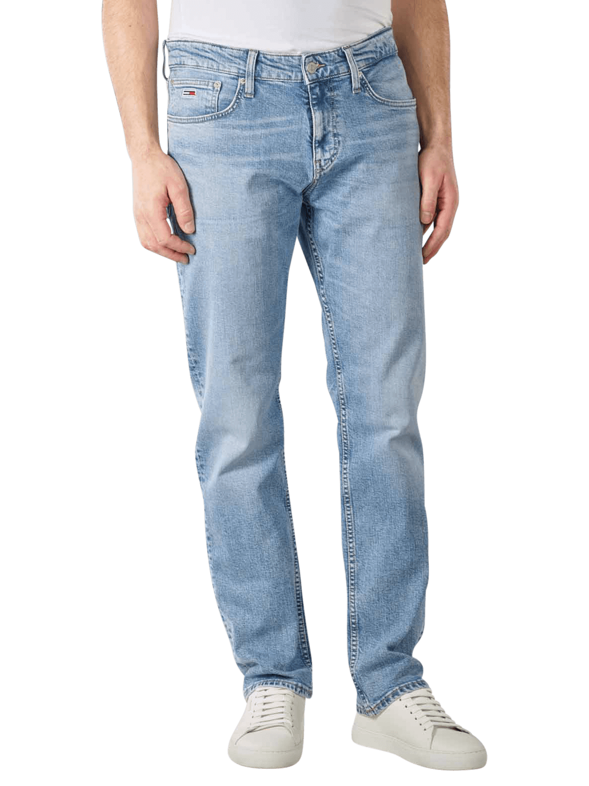 Die Tommy Jeans Ryan Regular Straight ist eine coole Basic Jeans. Sie hat eine tolle Waschung und sitzt locker und bequem. Die Passform der Five Pocket Jeans ist Straight Fit. Durch den mittelhohen Bund und das gerade Bein entsteht eine schlanke Silhouette.