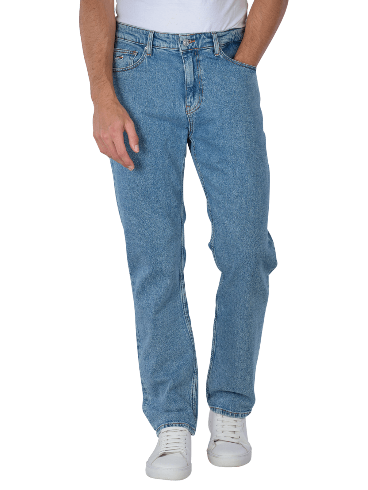 Das Tommy Jeans Ryan Straight Denim für Männer ist eine stilvolle Jeans mit geradem Beinausschnitt und mittlerer Bundhöhe. In einem frischen Hellblau strahlt sie einen lässigen Look aus. Die Straight Fit Jeans bietet dank des leichten Stretchanteils hohen Tragekomfort. Sie verfügt über einen Reissverschluss und das klassische Five-Pocket-Design. Aus 99% Baumwolle und 1% Elasthan, ist sie für einen normalen Waschgang von 30°C geeignet.