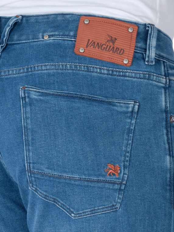 Entdecken Sie die Vanguard V7 Rider Jeans Regular Whale im angesagten Mittelblau! Diese modischen Jeans für Herren bieten eine gerade Beinform und eine mittlere Bundhöhe für optimalen Tragekomfort. Der hochwertige, dünne Stoff mit Stretchanteil sorgt für eine angenehme Passform im Straight Fit. Aus einem umweltfreundlichen Materialmix gefertigt, bestehen die Jeans aus 77% Baumwolle, 22% Polyester und 1% Elasthan. Der praktische Reissverschluss und die klassische Five-Pocket-Optik runden das stylische Design ab.