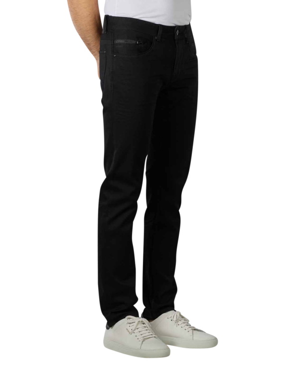 Mit der Vanguard V850 Rider Jeans Slim Fit im Farbton Black Denim kommt eine moderne Herrenjeans mit mittlerer Leibhöhe und engem Bein in den Kleiderschrank. Hergestellt aus einer hochwertigen Baumwoll-Mischung mit Stretchanteil bietet die Jeans trotz eng anliegender Passform den ganzen Tag über einen hohen Tragekomfort. Zudem ist die Herrenjeans pflegeleicht und unkompliziert bei 30 °C in der Maschine waschbar.