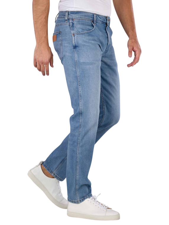 Die Wrangler Greensboro Jeans bietet eine Regular Fit Passform mit einem geraden Beinausschnitt und mittlerer Bundhöhe. Das hellblaue Design ist für Männer gedacht und kommt mit einem modernen Straight Fit. Der Standarddicke Stoff besteht aus 79% Baumwolle, 20% Polyester und 1% Elasthan. Diese Five-Pocket Jeans schließt mit einem Reissverschluss und ist bei 30°C maschinenwaschbar. Ideal für einen lässigen, bequemen Look.