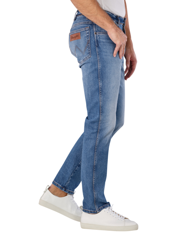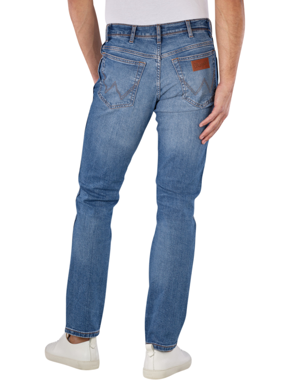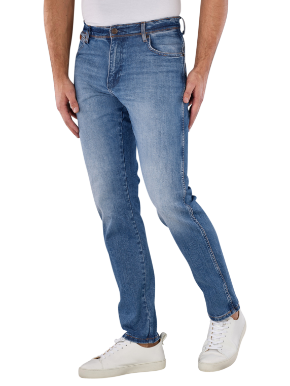 Die Wrangler Texas Jeans Slim Fit in Prairie Blue bietet eine vielseitige Passform mit eng geradem Beinausschnitt und mittlerer bis hoher Bundhöhe. Die mittelblaue Jeans für Männer zeichnet sich durch ihre Standardstoffdicke und Stretchanteil aus. Als klassische Five-Pocket-Hose mit Reissverschluss und mittlerer Waschung kombiniert sie Stil und Komfort. Die Pflege ist einfach: Normalwaschgang bei 30°C, kein Bleichen. Material: 99% Baumwolle, 1% Elasthan.
