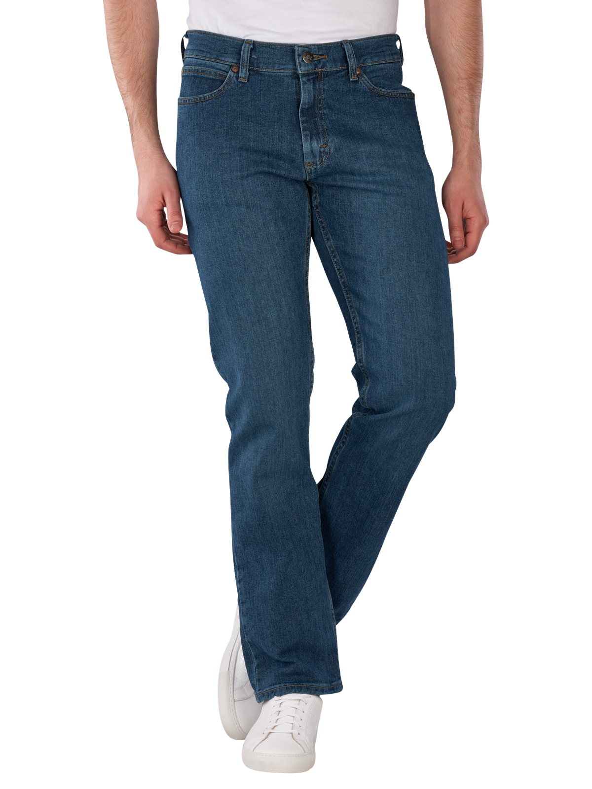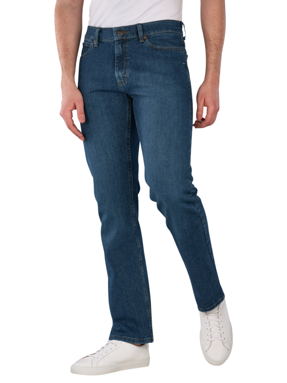 Die Lee Brooklyn Jeans Straight Fit Stead Fast bietet einen geraden Beinausschnitt und eine mittelhohe Bundhöhe. Sie ist in einem mittleren Blau gehalten und verfügt über einen praktischen Reißverschluss. Mit ihrem Stretchanteil sorgt sie für Bewegungsfreiheit und Komfort. Die Jeans ist im Five-Pocket-Stil gestaltet und eignet sich für verschiedene Freizeitaktivitäten. Pflegehinweis: Normalwaschgang bei 30°C, nicht bleichen.