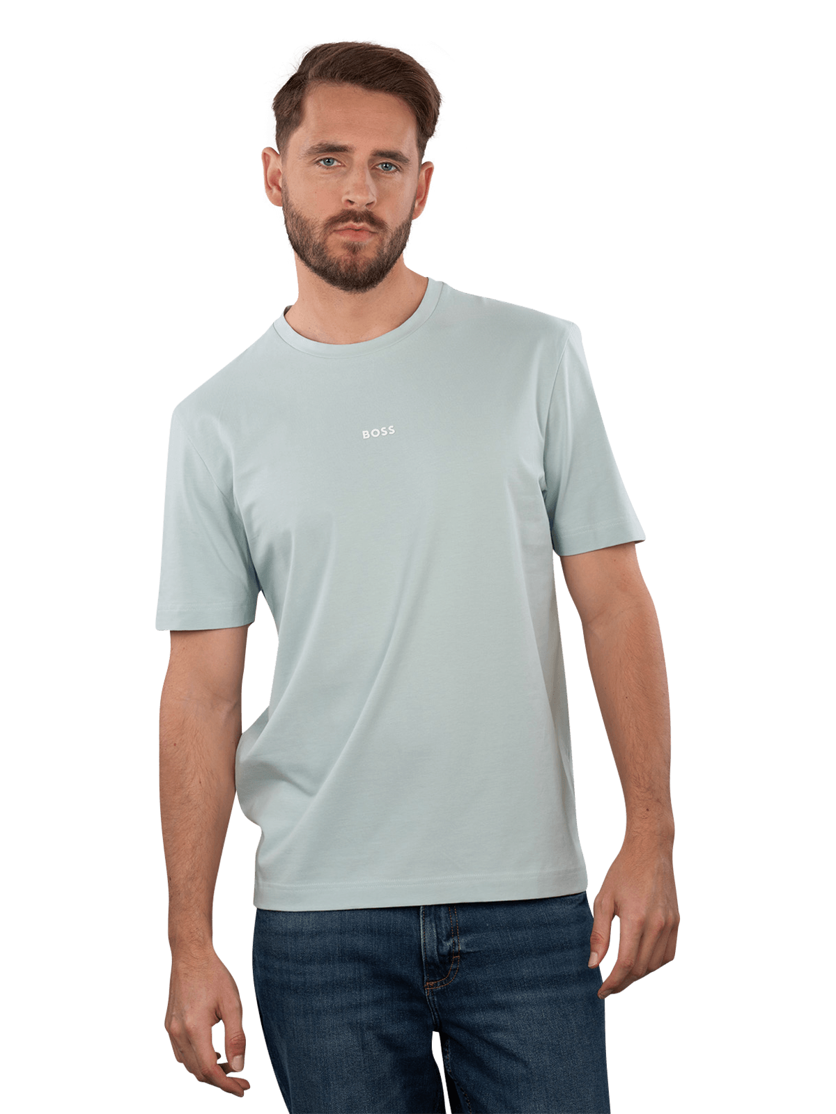 Das Boss Orange TChup T-Shirt in Türkis-Aqua bietet einen Rundhalsausschnitt und besteht aus 96% Baumwolle und 4% Elasthan. Es eignet sich für den Schonwaschgang bei 30°C und ist pflegeleicht. Die Kombination aus Baumwolle und Elasthan sorgt für einen angenehmen Tragekomfort und eine gute Passform. Dieses T-Shirt ist vielseitig kombinierbar und bietet eine frische Farboption für die Garderobe.